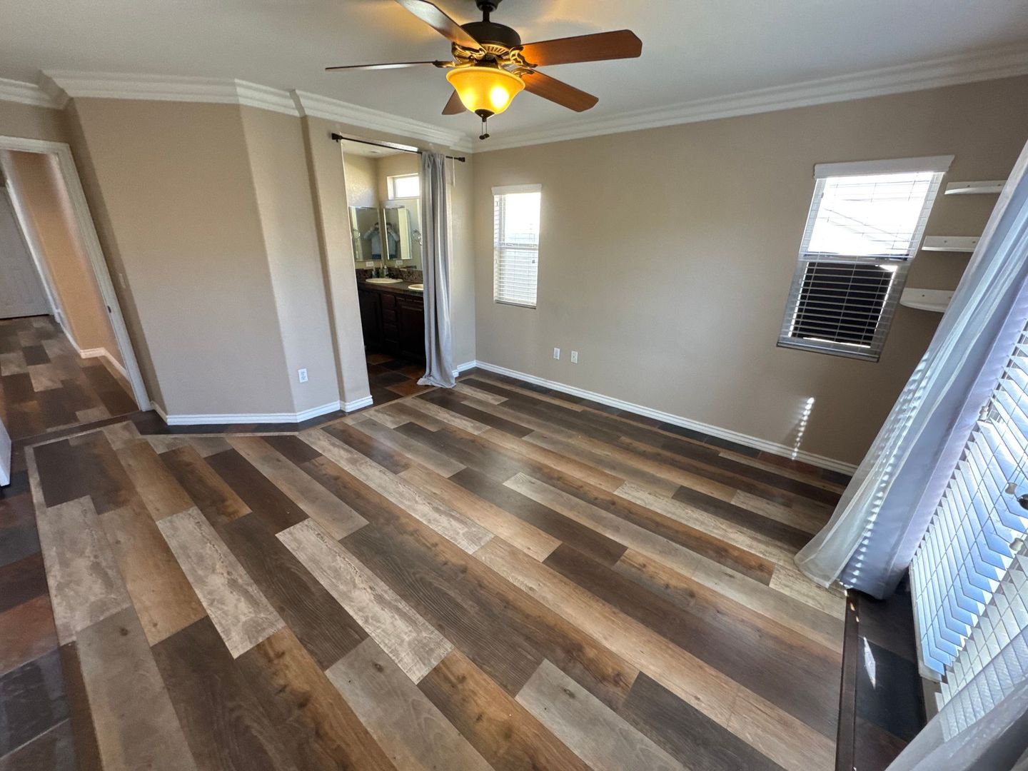 Step onto the inviting front porch with its relaxing porch swing before entering this beautifully upgraded two-story home. Inside, the first floor features warm hardwood flooring that leads you into a modern kitchen with granite countertops, espresso solid-wood cabinetry, and stainless steel appliances. Continue upstairs to find stylish laminate wood flooring throughout, along with a versatile den perfect for a home office or lounge. The primary bedroom offers a private balcony, while both upstairs bathrooms feature natural skylights that brighten the space. Outside, a cozy, intimate backyard provides the perfect spot to unwind.
