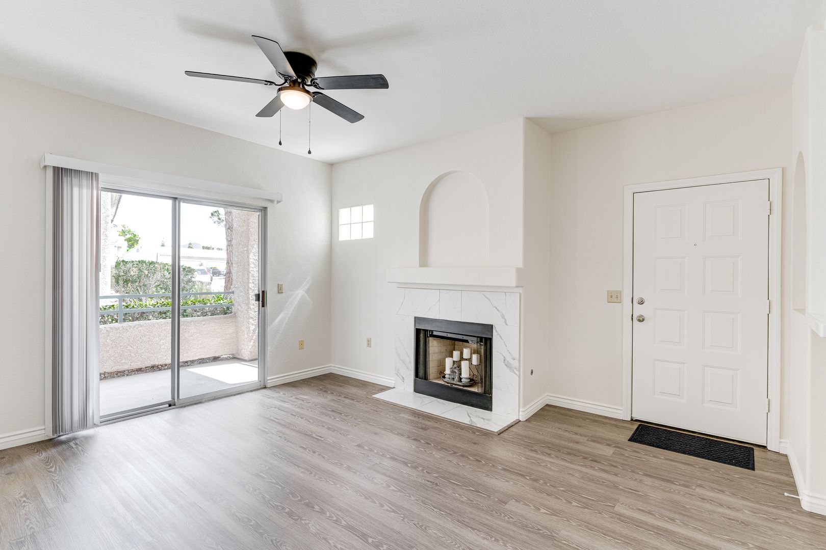 Experience comfort and convenience in this beautifully updated first-floor Green Valley home featuring plank wood laminate flooring throughout. The bright, open layout includes a generous living area, a separate dining space, and a modern kitchen complete with a breakfast counter and stainless steel appliances.