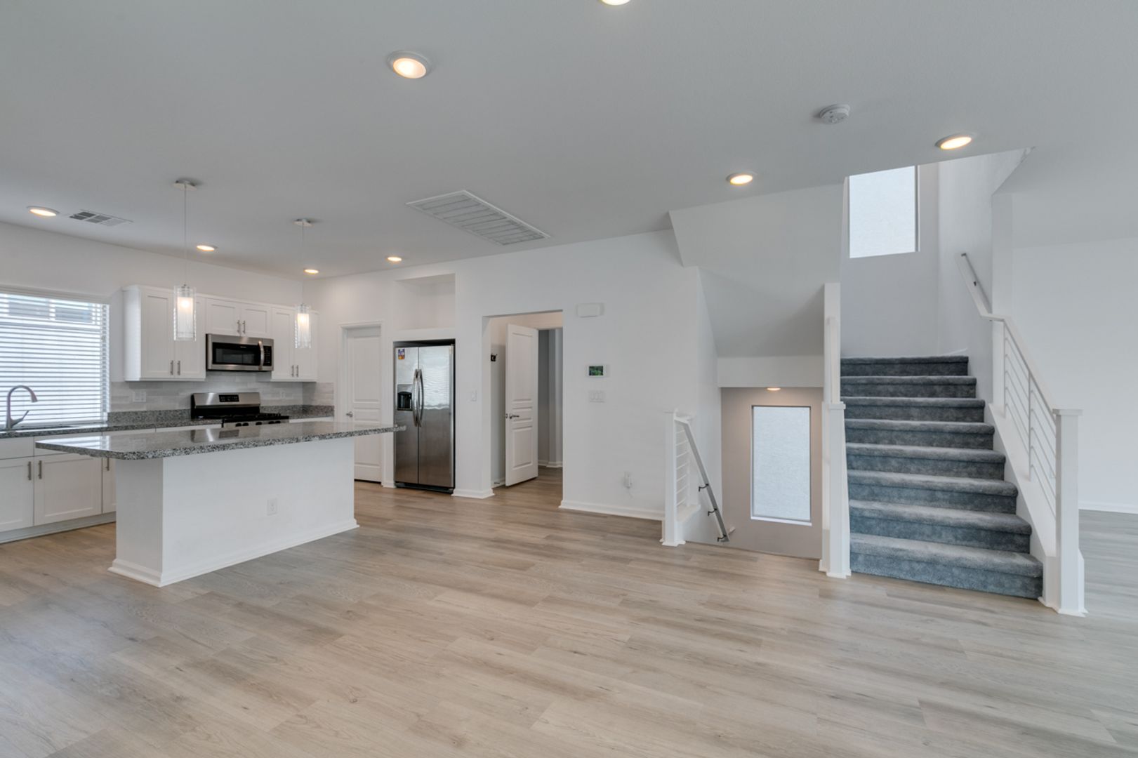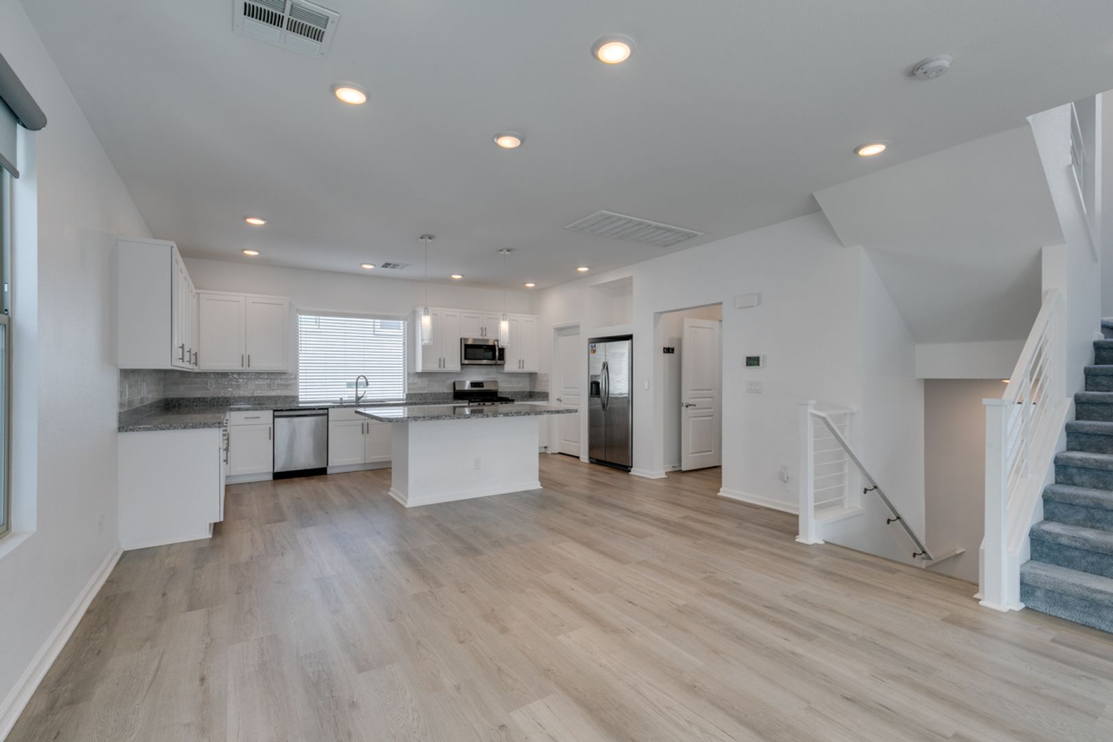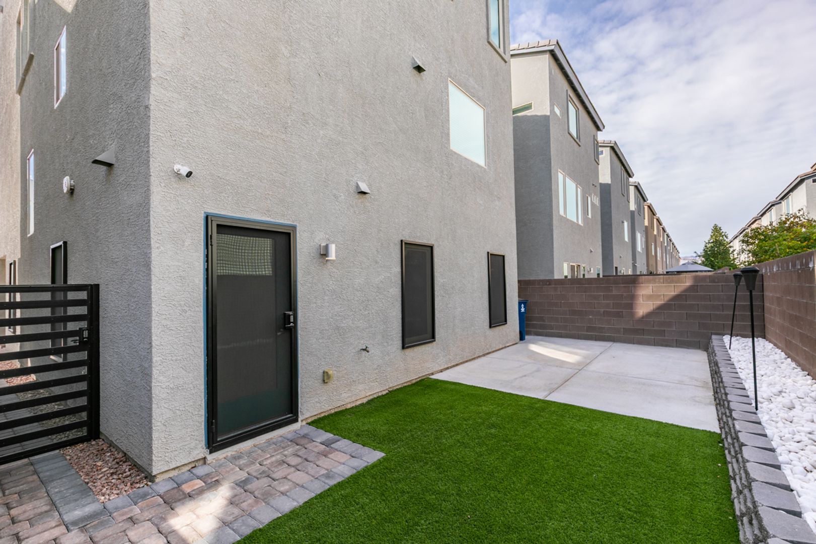 Welcome to this gorgeous 3-bedroom, 2.5-bath, three-story home in a gated community. The open-concept main level is ideal for everyday living and entertaining, featuring a modern kitchen with stainless steel appliances, granite countertops, and a large island overlooking the living and dining areas. Upstairs offers well-sized bedrooms with ample privacy, while the top level leads to an impressive rooftop deck perfect for relaxing or hosting guests. Enjoy a private backyard with low-maintenance landscaping, all within a thoughtfully designed home that blends style, comfort, and convenience.