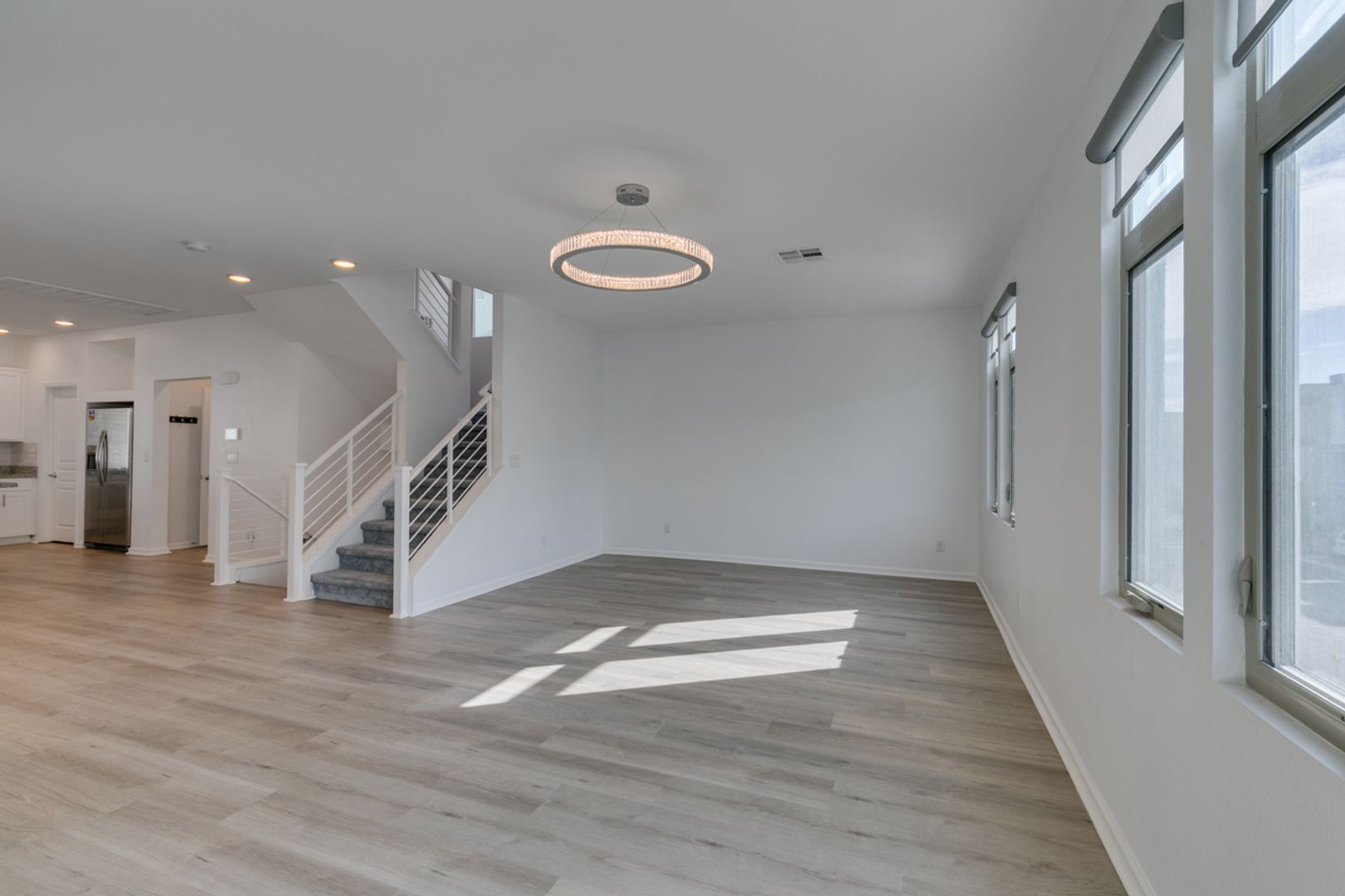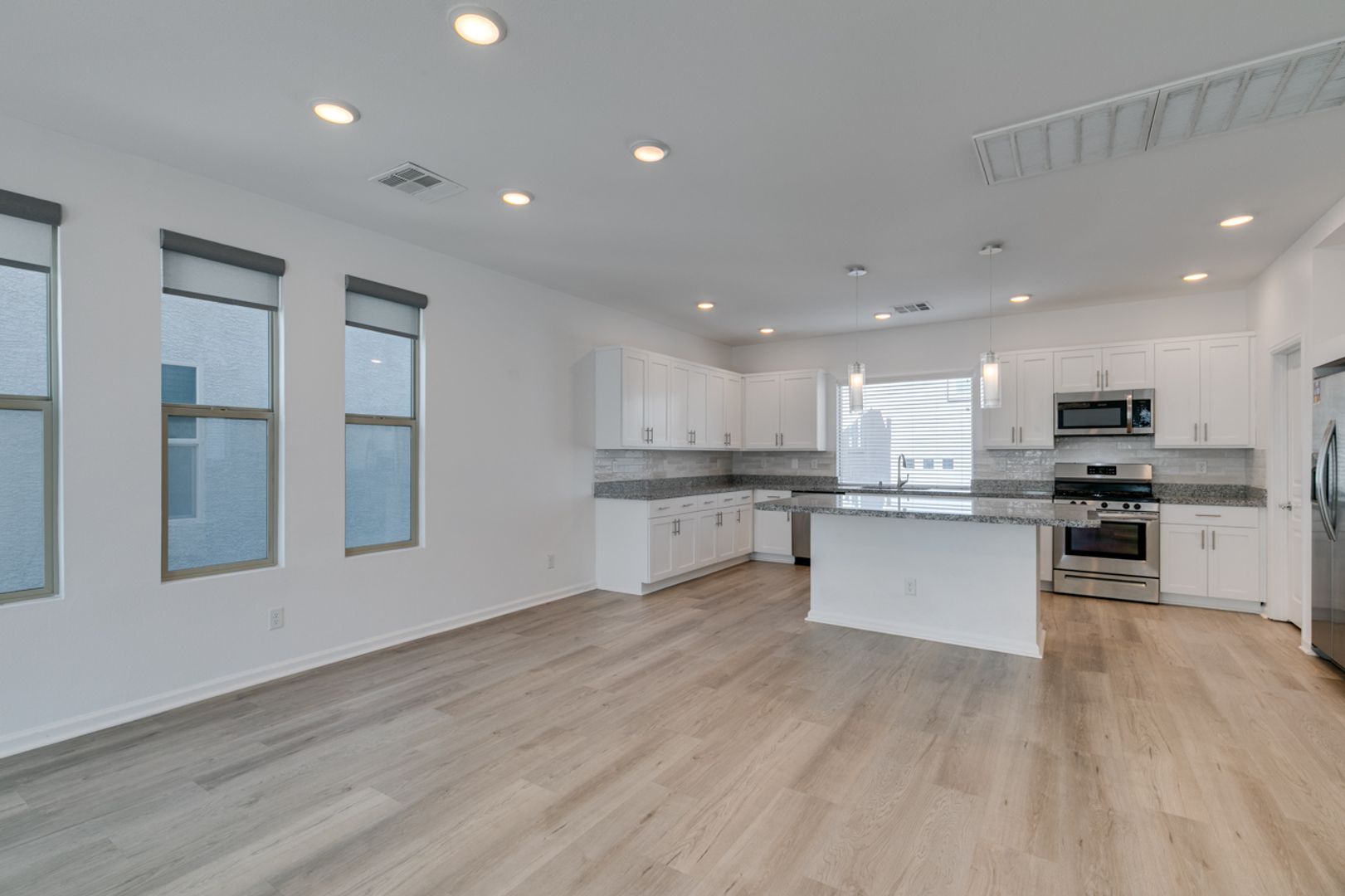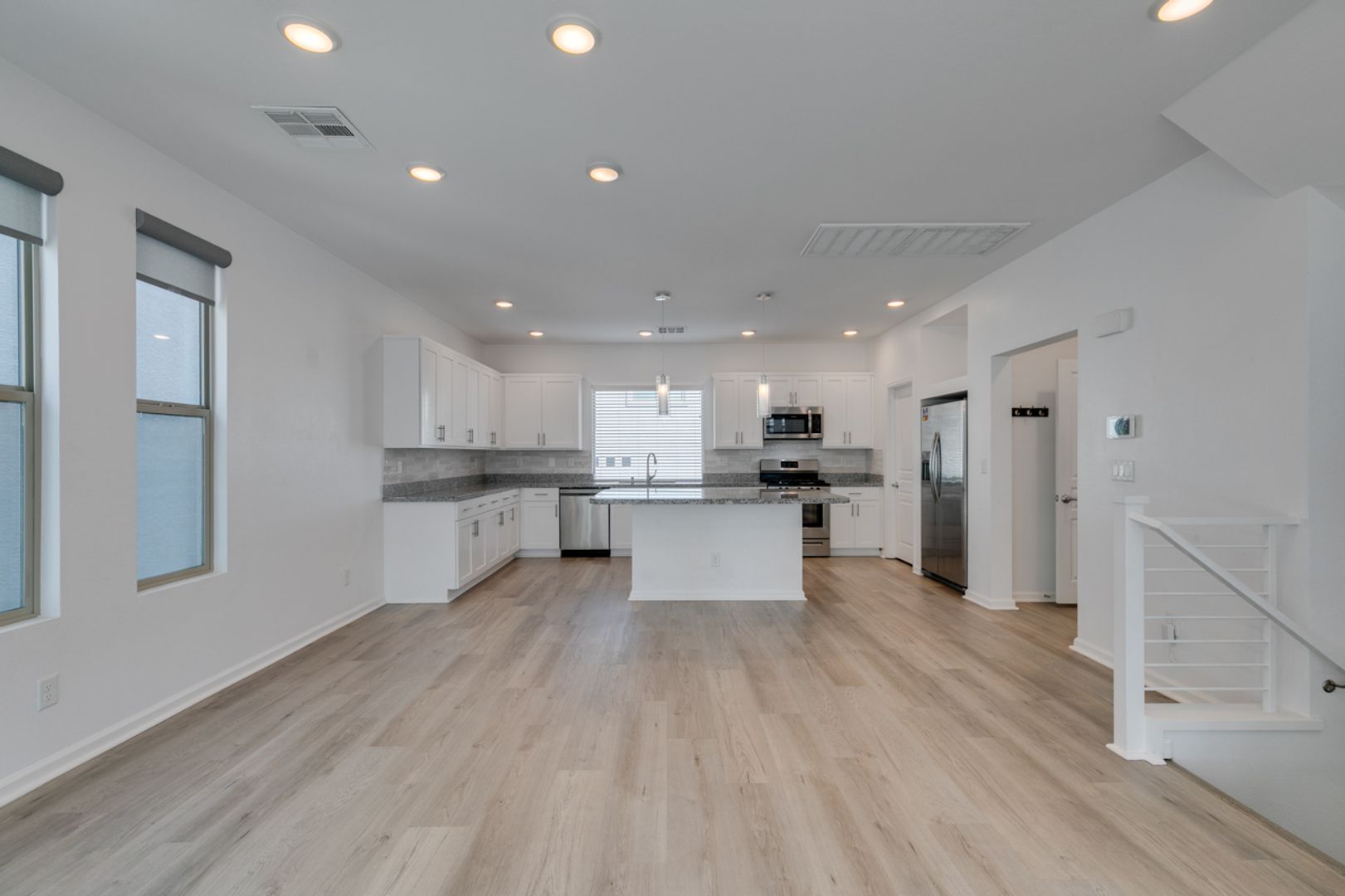 Welcome to this gorgeous 3-bedroom, 2.5-bath, three-story home in a gated community. The open-concept main level is ideal for everyday living and entertaining, featuring a modern kitchen with stainless steel appliances, granite countertops, and a large island overlooking the living and dining areas. Upstairs offers well-sized bedrooms with ample privacy, while the top level leads to an impressive rooftop deck perfect for relaxing or hosting guests. Enjoy a private backyard with low-maintenance landscaping, all within a thoughtfully designed home that blends style, comfort, and convenience.