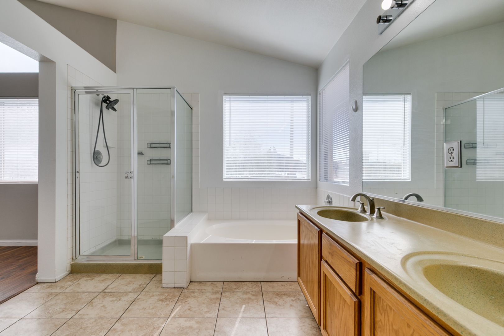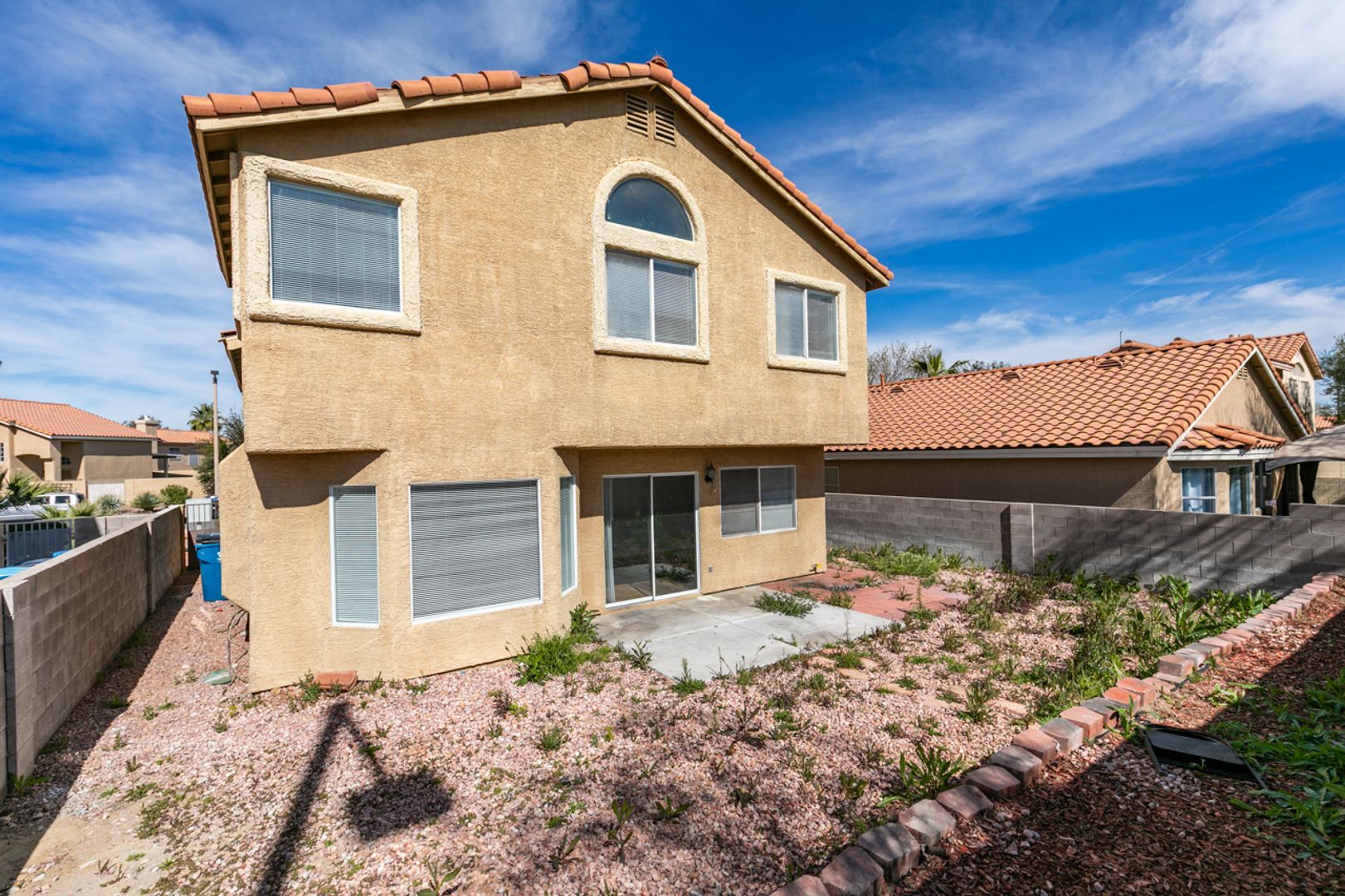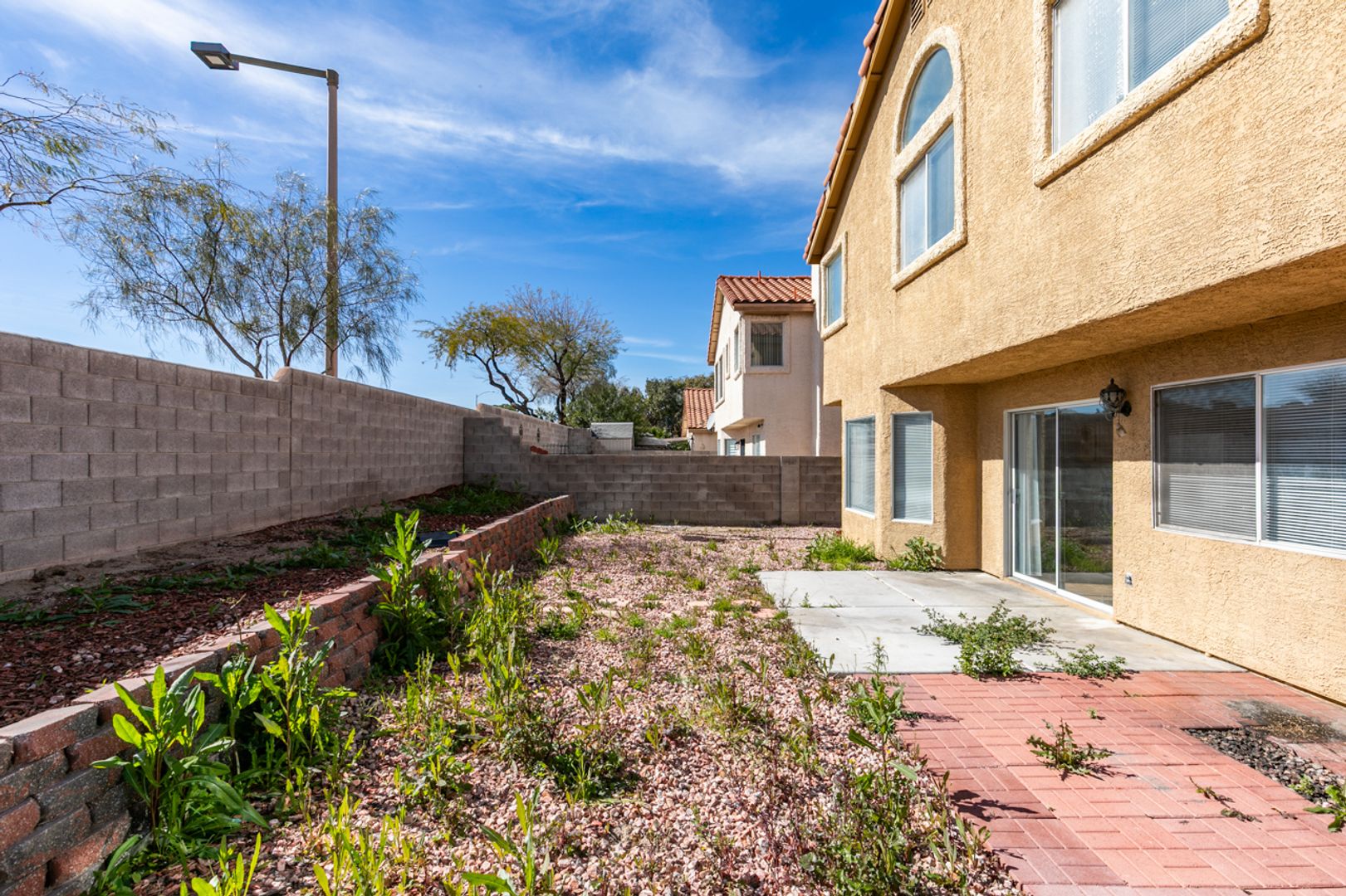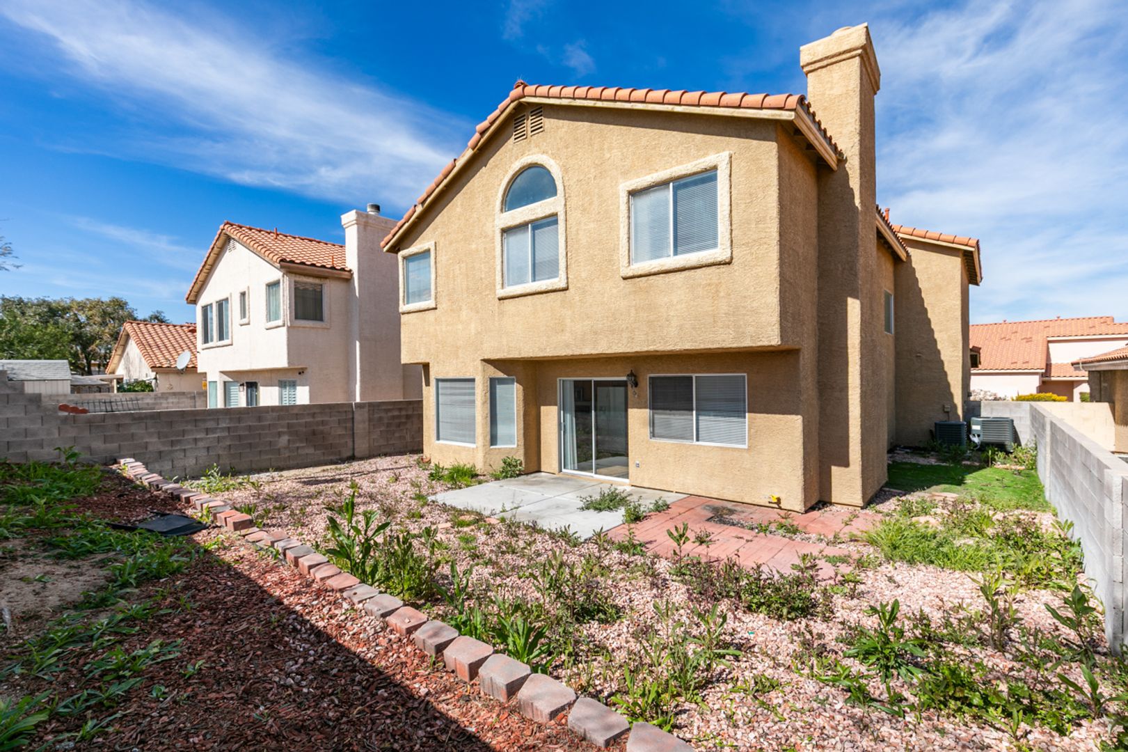 Located in desirable Summerlin, this charming 3-bedroom, 2.5-bath home offers a welcoming and functional layout. Upon entry, you’re greeted by a versatile space ideal for a dining area that seamlessly flows into the living room, complete with a cozy fireplace and open-concept connection to the kitchen. The kitchen features a center island that doubles as a breakfast bar, perfect for casual dining and entertaining. Upstairs, spacious bedrooms are filled with natural light, creating a bright and comfortable retreat. The primary suite includes a private bath with a separate walk-in shower and soaking tub, along with a generous walk-in closet. Step outside to a large, desert-landscaped backyard offering plenty of space and potential for outdoor enjoyment. * New dishwasher and stove i**