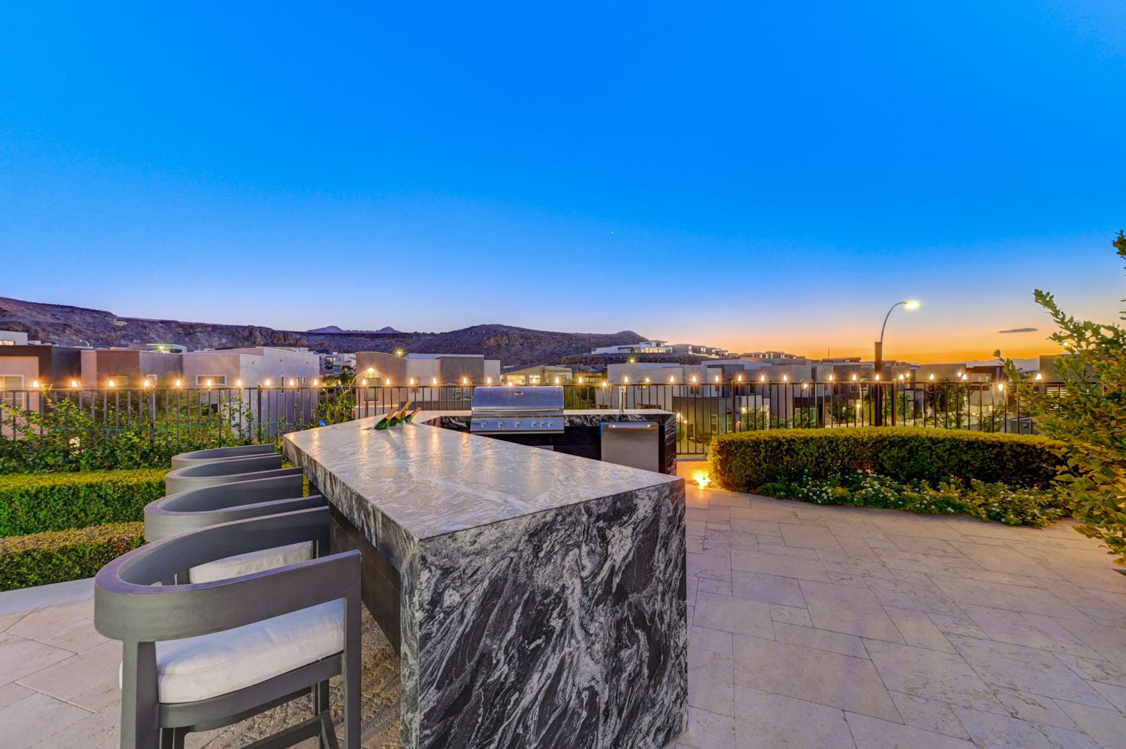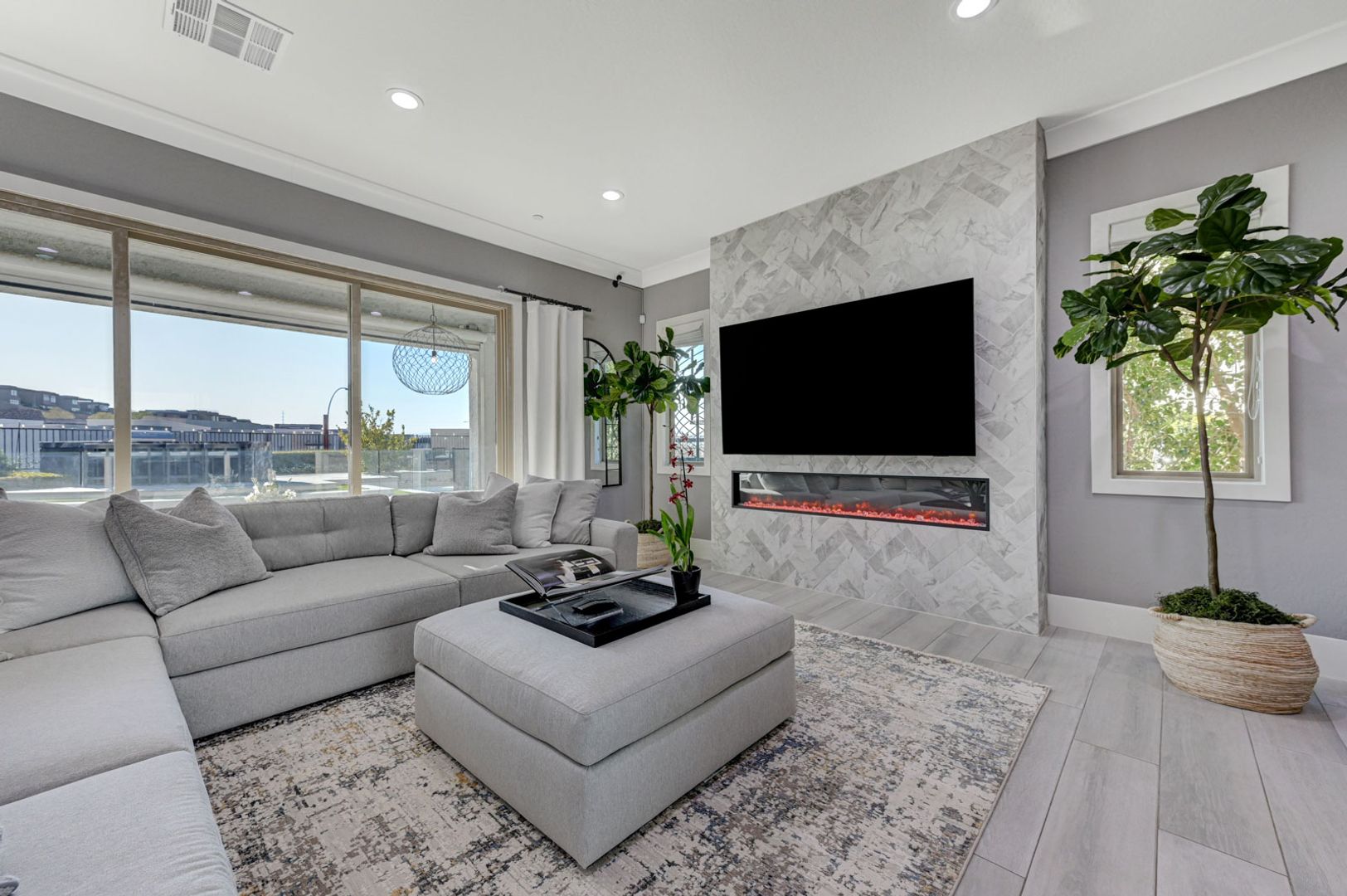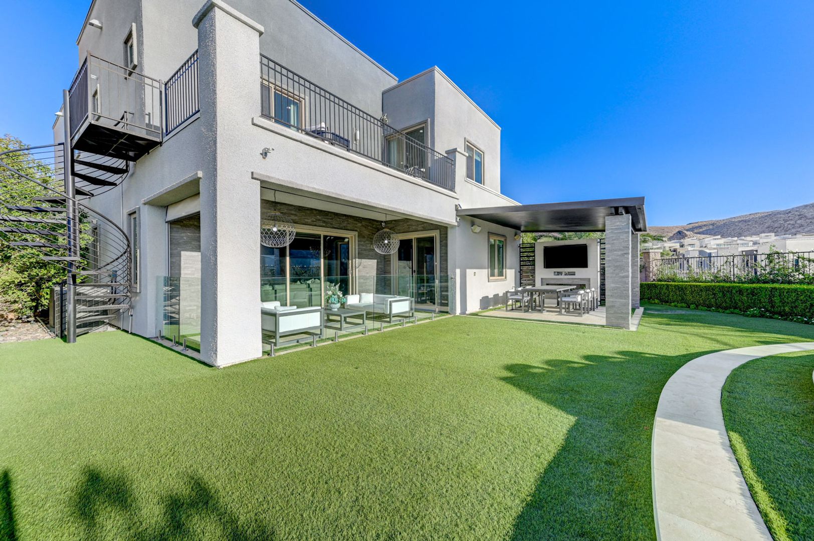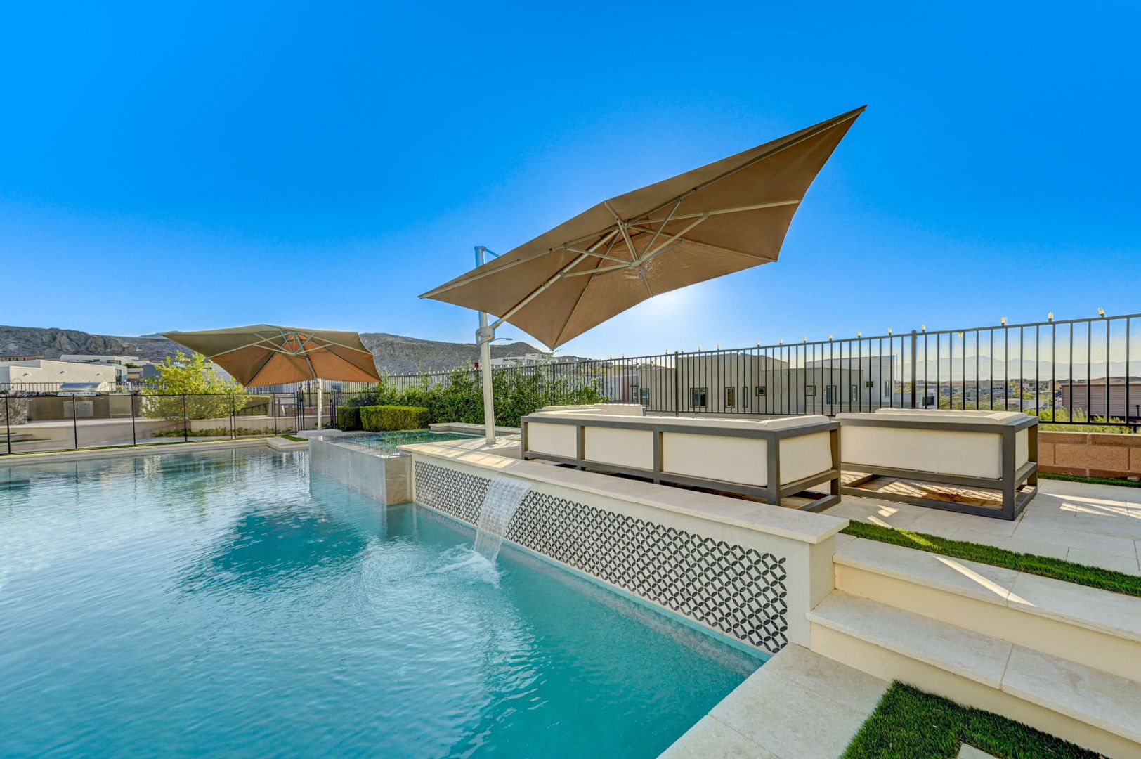 Set on the community’s largest lot, the backyard delivers true resort living with unobstructed views, a 40+ foot pool, jacuzzi, firepit, and an outdoor kitchen with dining area, TV, and shower.