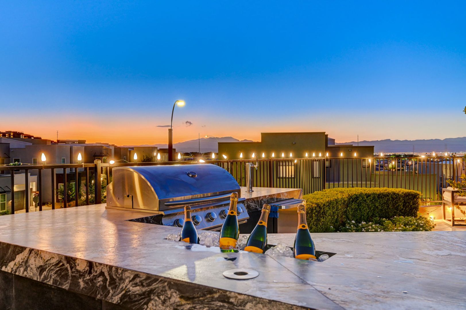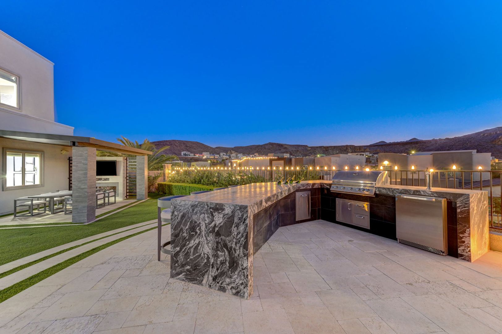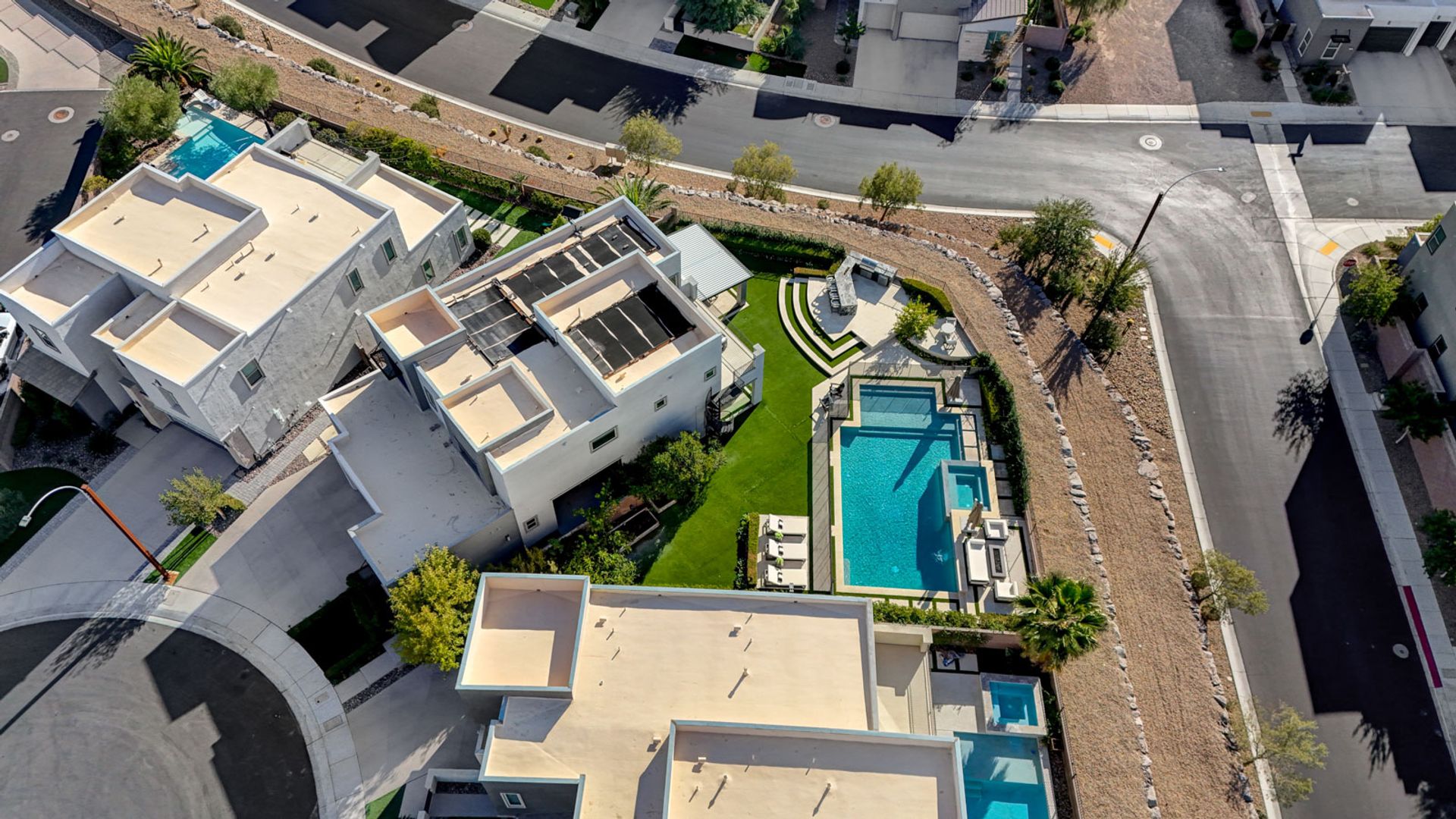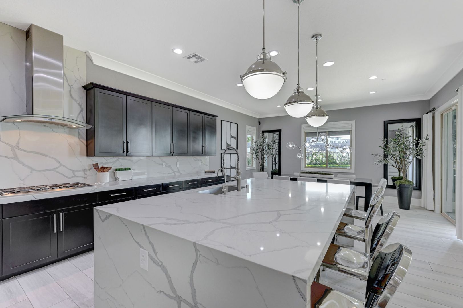 Set on the community’s largest lot, the backyard delivers true resort living with unobstructed views, a 40+ foot pool, jacuzzi, firepit, and an outdoor kitchen with dining area, TV, and shower.