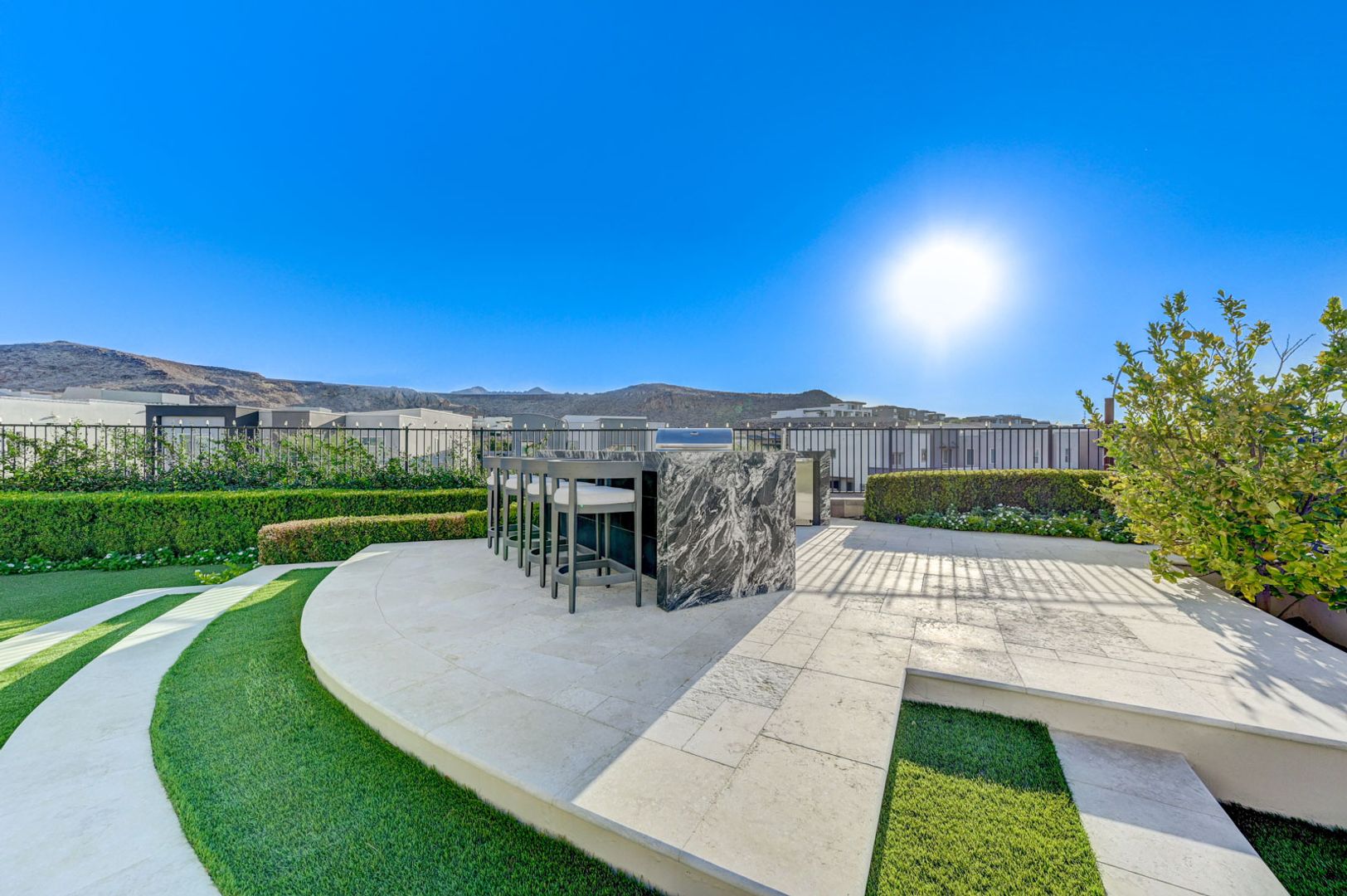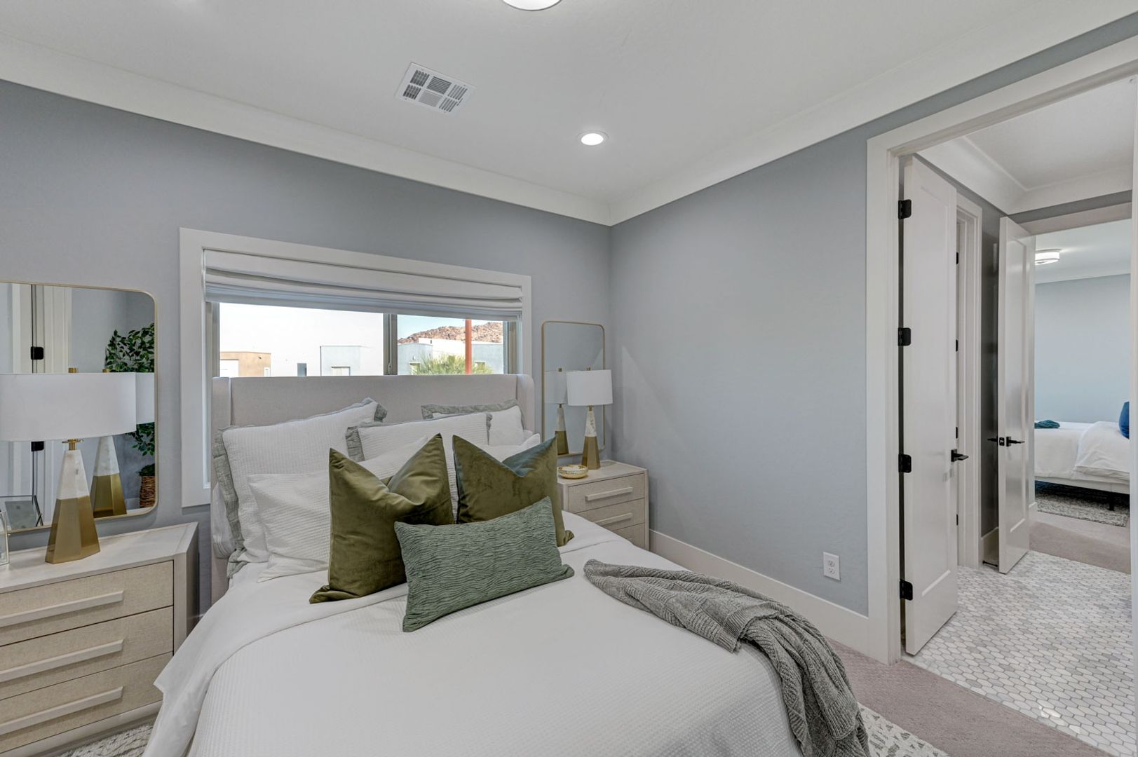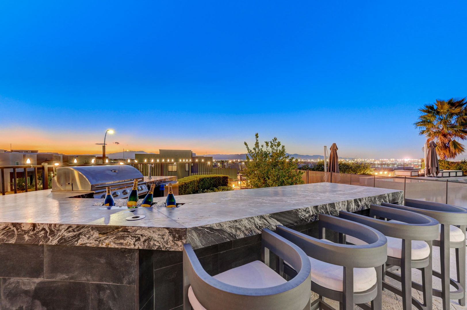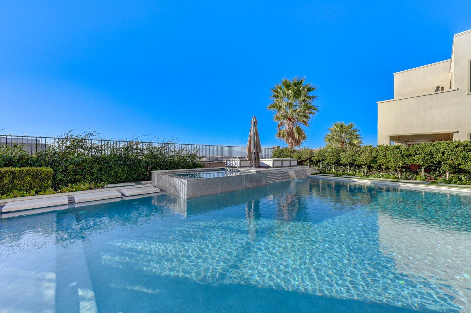 Set on the community’s largest lot, the backyard delivers true resort living with unobstructed views, a 40+ foot pool, jacuzzi, firepit, and an outdoor kitchen with dining area, TV, and shower.