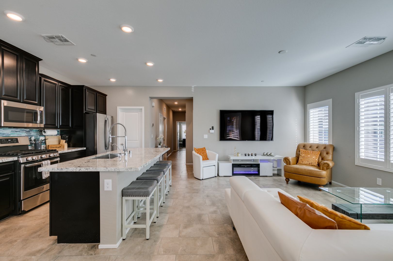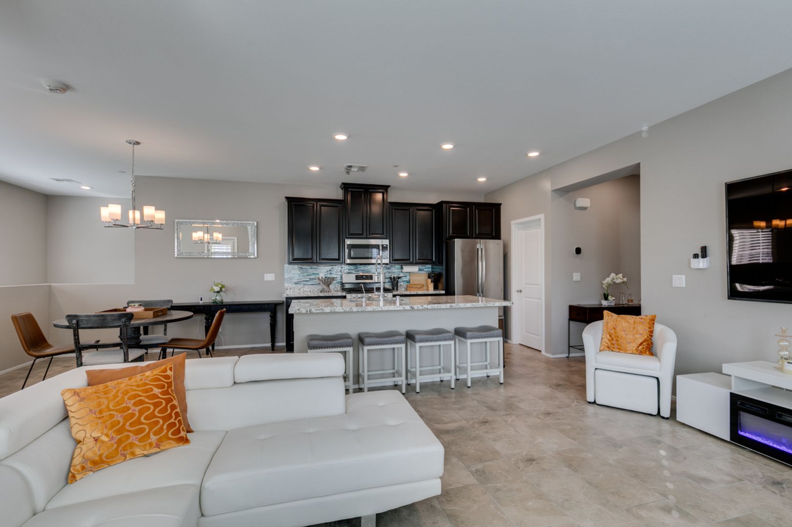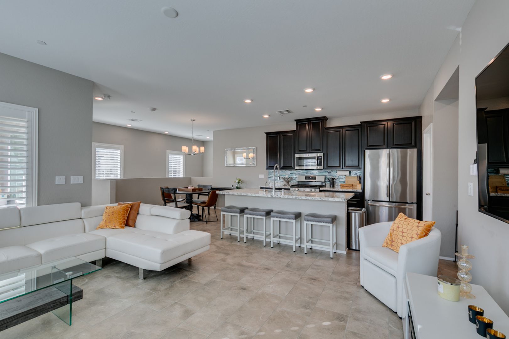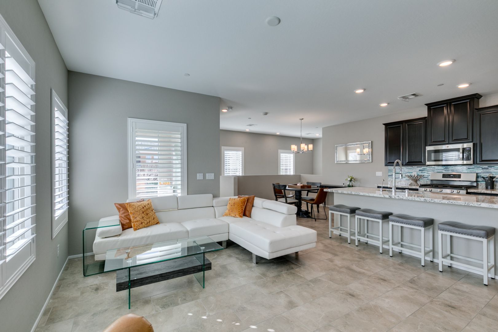 Step into elevated living in this fully furnished luxury 2-bedroom, 2.5-bath townhome located in a gated community in 89052, where style and comfort blend seamlessly. The second level showcases an open-concept layout with a bright, airy living room flowing effortlessly into a sleek kitchen featuring a generous island that doubles as a breakfast bar, perfect for entertaining or everyday living, while a door off the living area opens to a private balcony ideal for relaxing mornings or evenings. On the ground level, the private attached garage offers both convenience and modern functionality with a built-in electric vehicle charger. Both bedrooms are spacious and filled with natural light, offering a tranquil retreat, and the primary suite impresses with a large walk-in closet, dual his-and-her sinks, and an elegant walk-in shower, creating a spa-like experience throughout a home designed for refined, effortless living. To further enhance the ease of ownership, monthly Maid service is included, ensuring the home’s exterior maintenance is handled with the same level of care and attention reflected throughout the property.