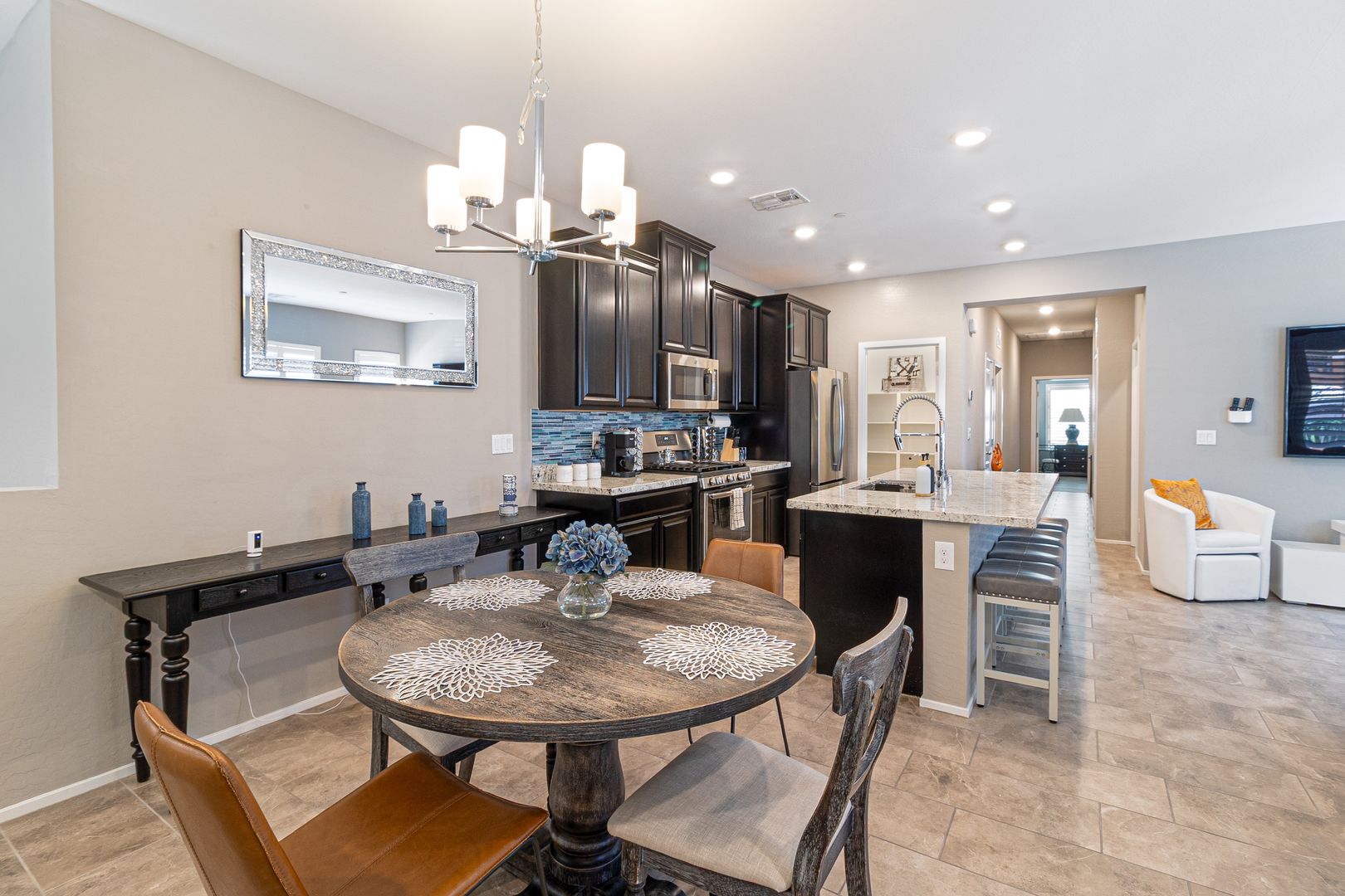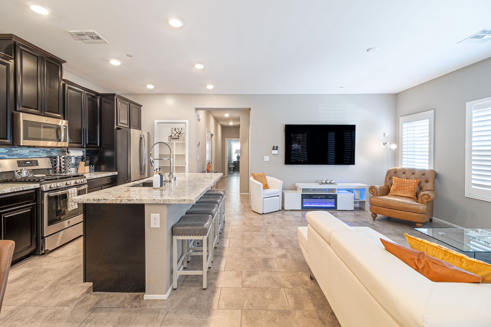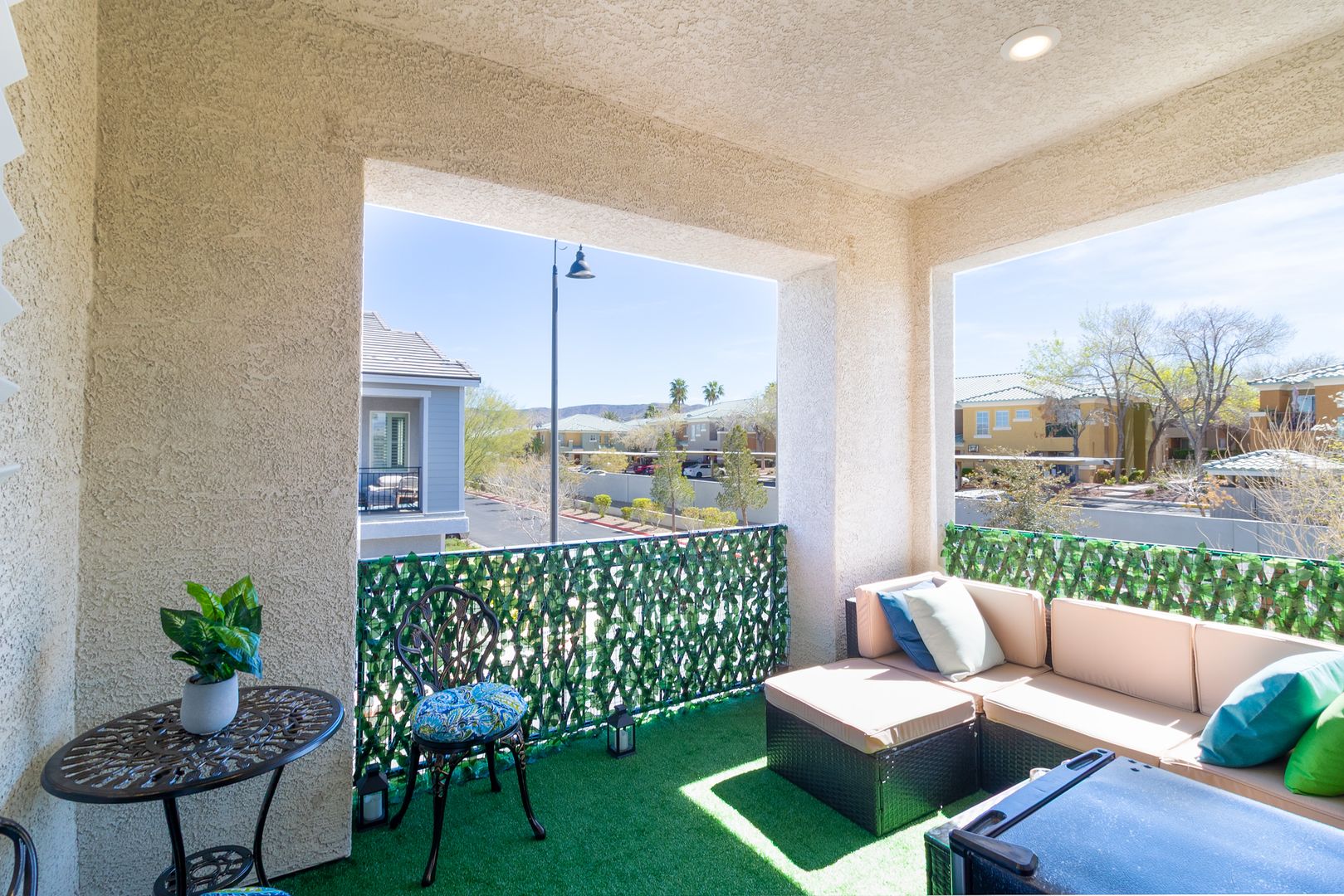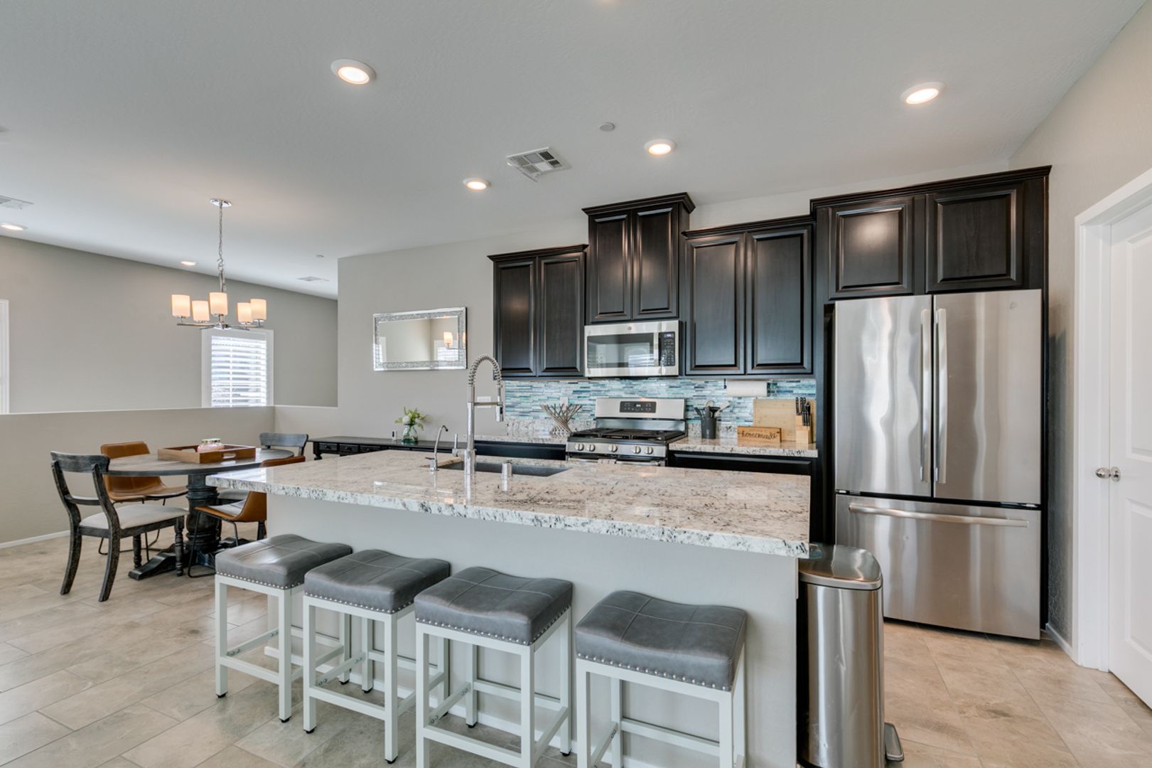 Step into elevated living in this fully furnished luxury 2-bedroom, 2.5-bath townhome located in a gated community in 89052, where style and comfort blend seamlessly. The second level showcases an open-concept layout with a bright, airy living room flowing effortlessly into a sleek kitchen featuring a generous island that doubles as a breakfast bar, perfect for entertaining or everyday living, while a door off the living area opens to a private balcony ideal for relaxing mornings or evenings. On the ground level, the private attached garage offers both convenience and modern functionality with a built-in electric vehicle charger. Both bedrooms are spacious and filled with natural light, offering a tranquil retreat, and the primary suite impresses with a large walk-in closet, dual his-and-her sinks, and an elegant walk-in shower, creating a spa-like experience throughout a home designed for refined, effortless living. To further enhance the ease of ownership, monthly Maid service is included, ensuring the home’s exterior maintenance is handled with the same level of care and attention reflected throughout the property.