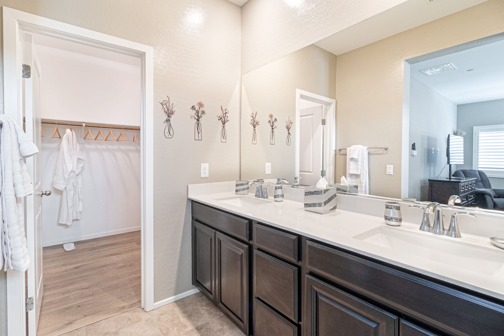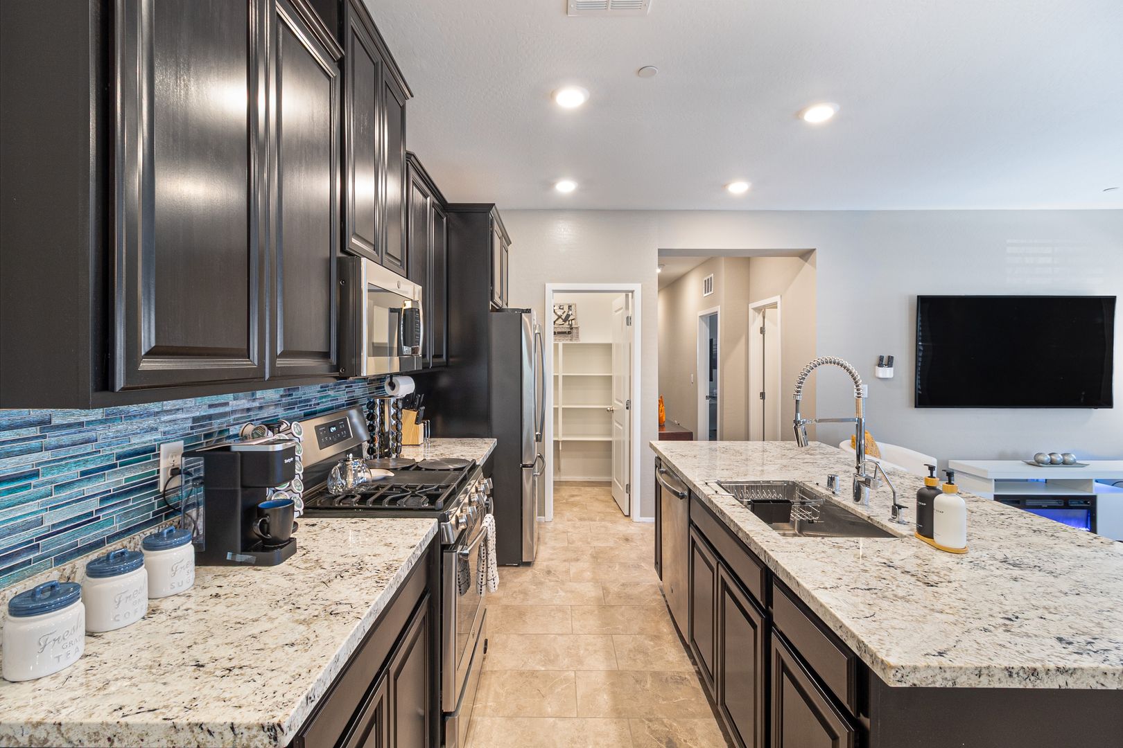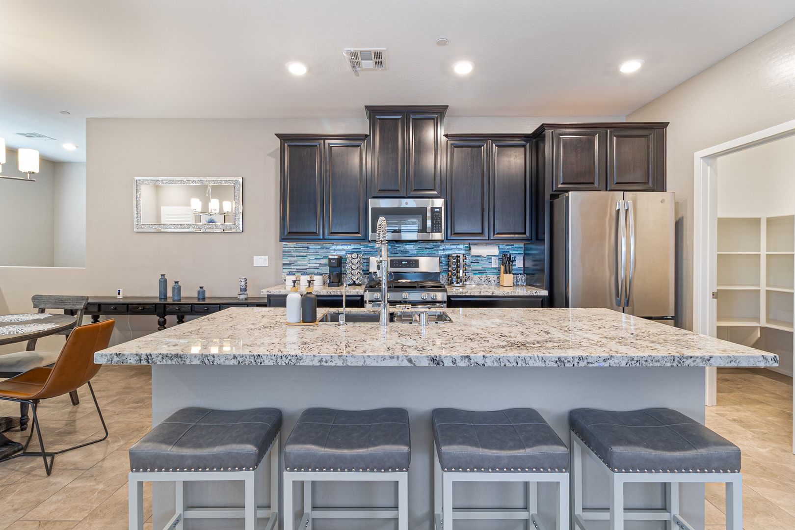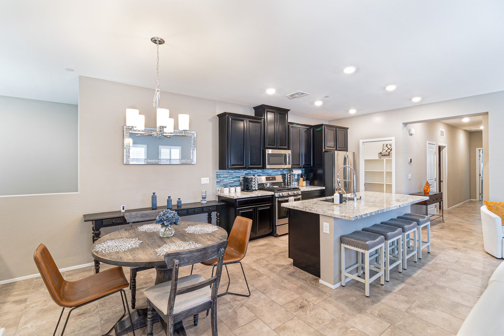 Step into elevated living in this fully furnished luxury 2-bedroom, 2.5-bath townhome located in a gated community in 89052, where style and comfort blend seamlessly. The second level showcases an open-concept layout with a bright, airy living room flowing effortlessly into a sleek kitchen featuring a generous island that doubles as a breakfast bar, perfect for entertaining or everyday living, while a door off the living area opens to a private balcony ideal for relaxing mornings or evenings. On the ground level, the private attached garage offers both convenience and modern functionality with a built-in electric vehicle charger. Both bedrooms are spacious and filled with natural light, offering a tranquil retreat, and the primary suite impresses with a large walk-in closet, dual his-and-her sinks, and an elegant walk-in shower, creating a spa-like experience throughout a home designed for refined, effortless living. To further enhance the ease of ownership, monthly Maid service is included, ensuring the home’s exterior maintenance is handled with the same level of care and attention reflected throughout the property.