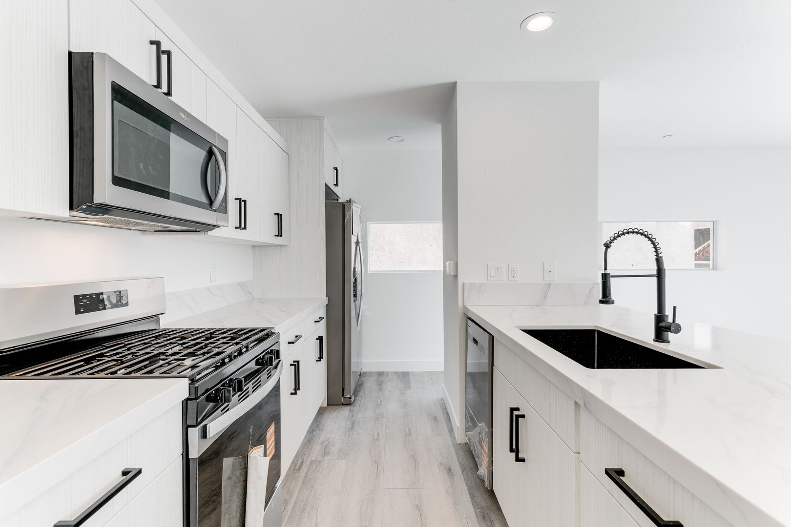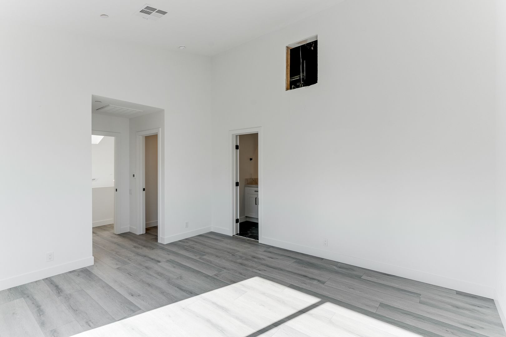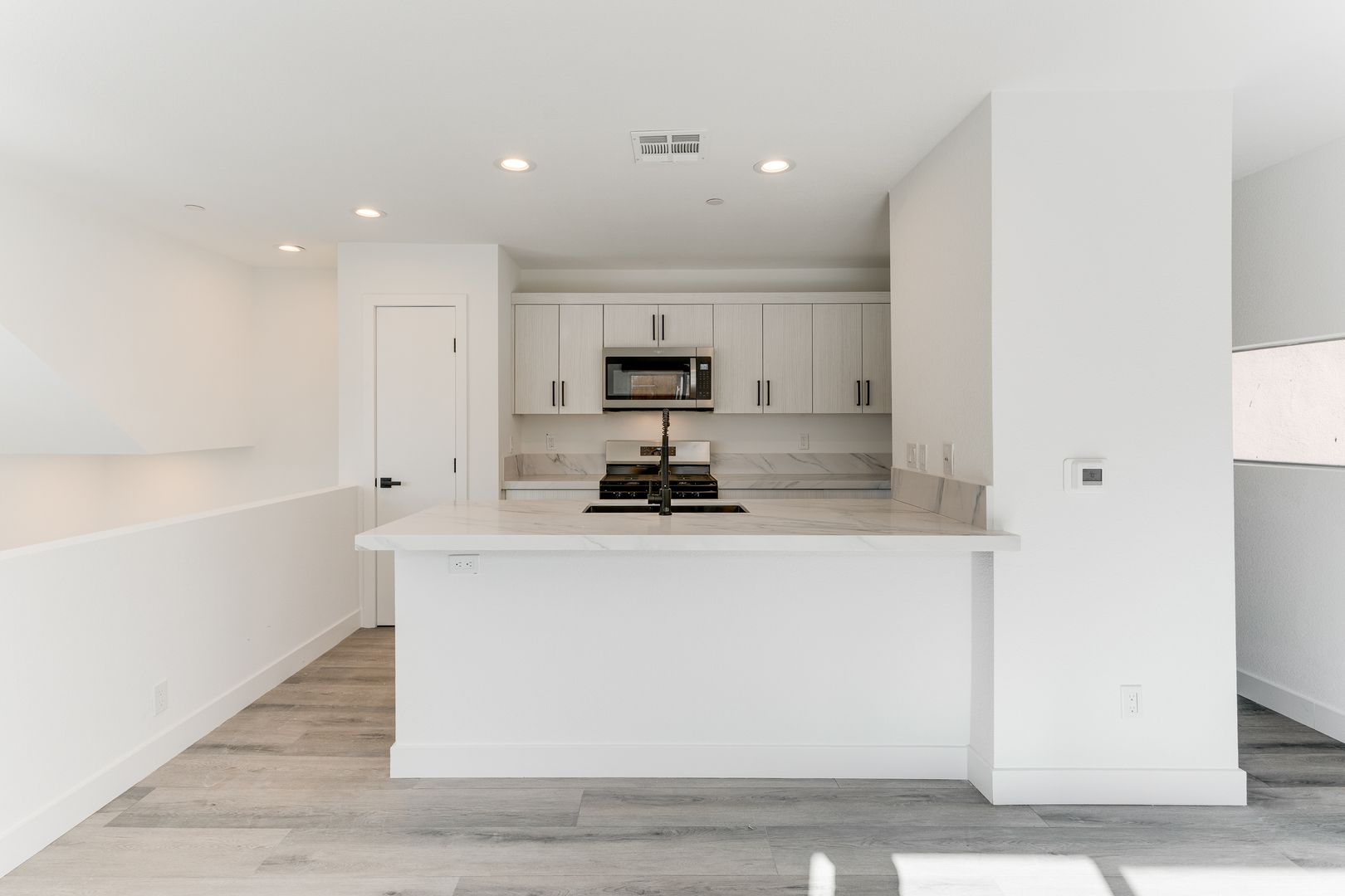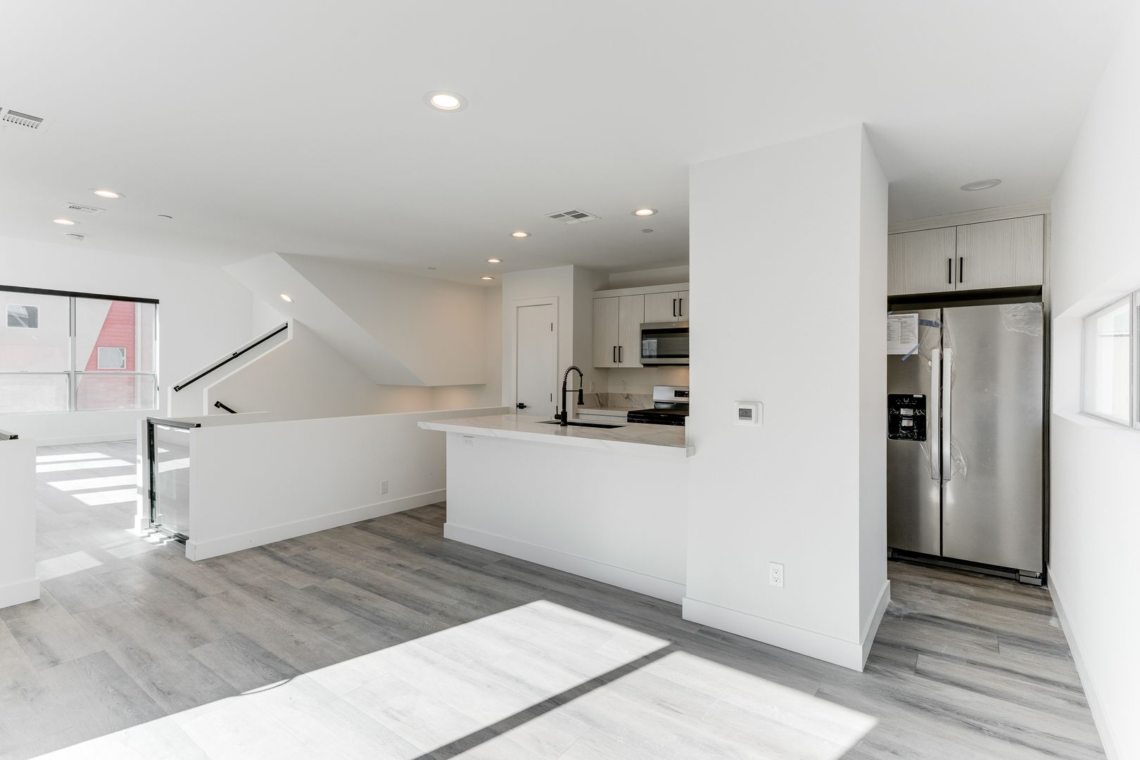 Discover this stunning loft-style townhome in the heart of Downtown! Spanning three levels, this home features a private yard, attached two-car garage, and modern design throughout. The first floor offers a bedroom, full bath, and versatile den with sleek concrete flooring. On the second floor, enjoy an open-concept kitchen, dining area, and living room with soaring vaulted ceilings, abundant natural light, and access to a private balcony. The top floor boasts a spacious primary suite with dual sinks and a large walk-in shower. Plus, take in breathtaking Strip and city views from both the second and third floors!