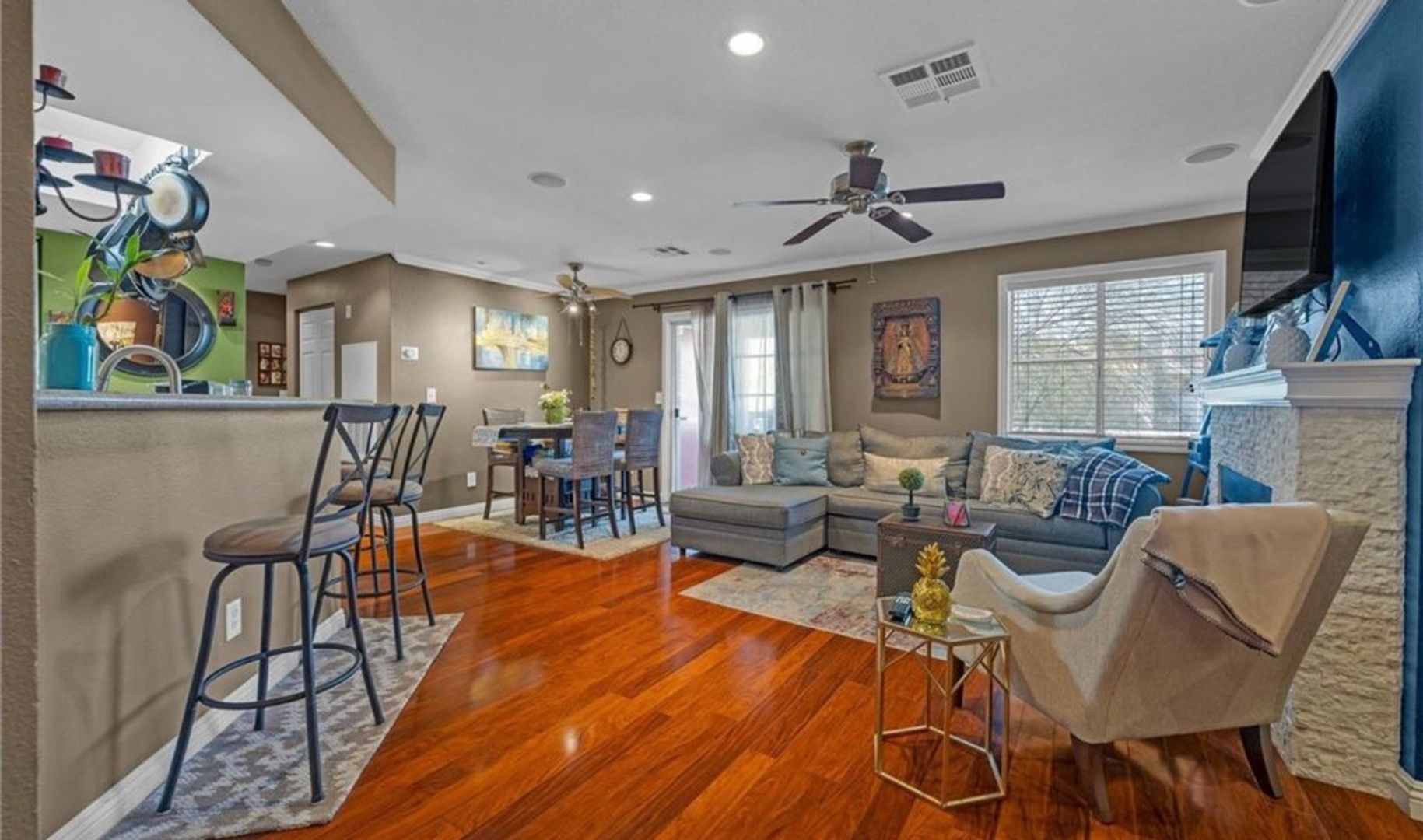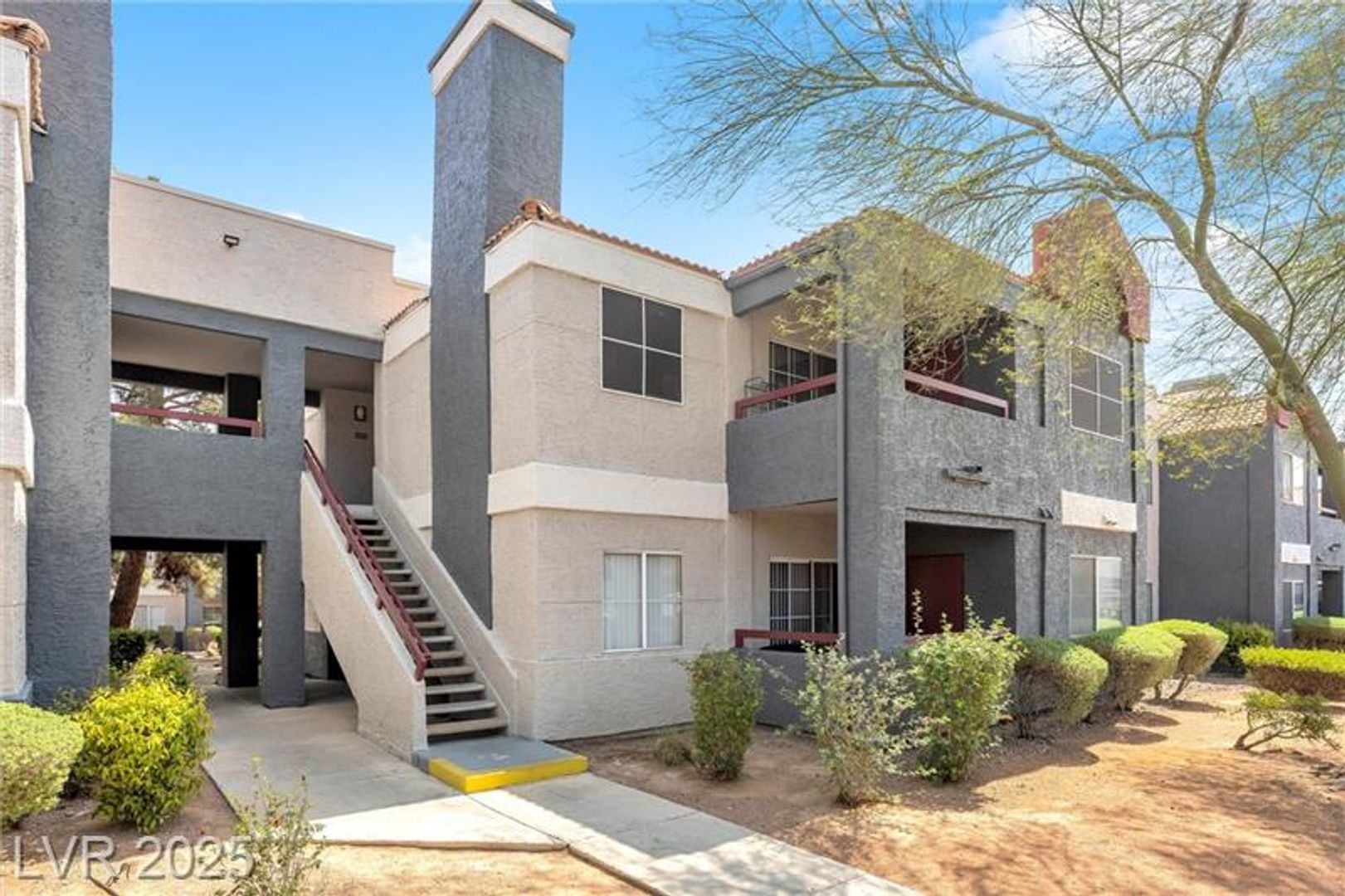 Step into this inviting upstairs condo featuring a comfortable open layout and a cozy fireplace in the living room. Off the living area, enjoy your own private balcony, perfect for morning coffee or relaxing in the evening. The kitchen offers granite countertops, stainless steel appliances, and plenty of cabinet space. Both bedrooms are generously sized, providing ample room to relax and unwind. Enjoy laminate flooring throughout, ceiling fans in every room, and the convenience of in-unit laundry. The community includes a pool, fitness center, and exterior maintenance. Conveniently located near Boca Park and Tivoli Village, with shopping, dining, and entertainment just minutes away.