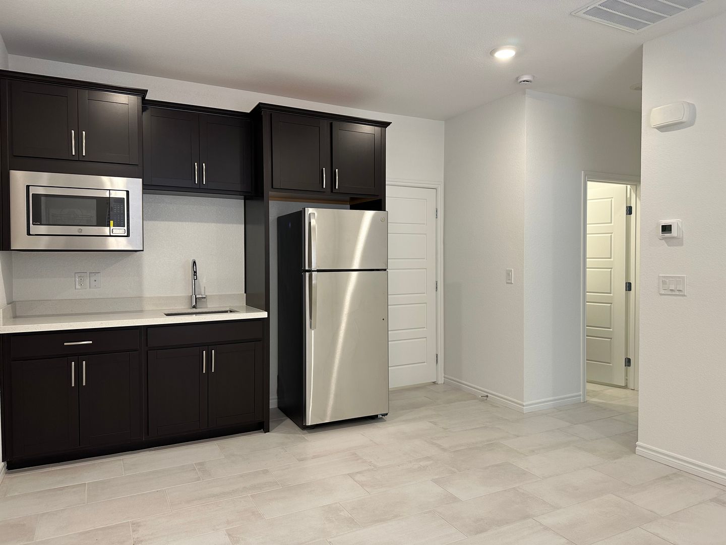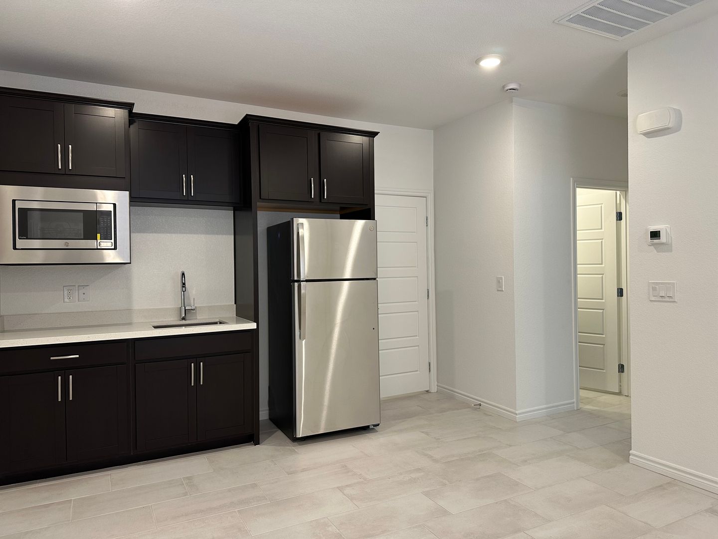 Experience contemporary living in this brand-new, single-story home. Never lived in and in pristine condition, this property features untouched fixtures, finishes, and appliances. The open floor plan with tile flooring throughout offers a spacious feel. With 4 bedrooms and 3 full baths, it's perfect for a large family, guests, or a home office. The upgraded kitchen includes stainless steel appliances, tall cabinetry, a large sink, and a generous island for entertaining. The newly landscaped backyard, with pavers and artificial grass, is beautiful and low maintenance. This home showcases Lennar's popular Next Gen model, providing a private living space within the main house, complete with a separate entrance, kitchen, fridge, and sink. Located in the vibrant Inspirada Master Plan Community, enjoy numerous amenities and easy access to Southern California, the airport, and the Las Vegas Strip.