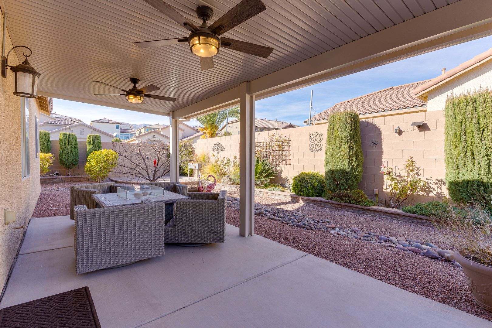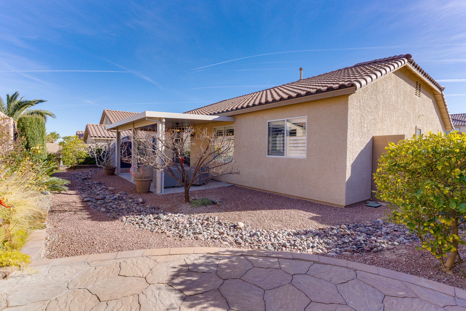 The desert-landscaped backyard offers room to create your own relaxing outdoor space.