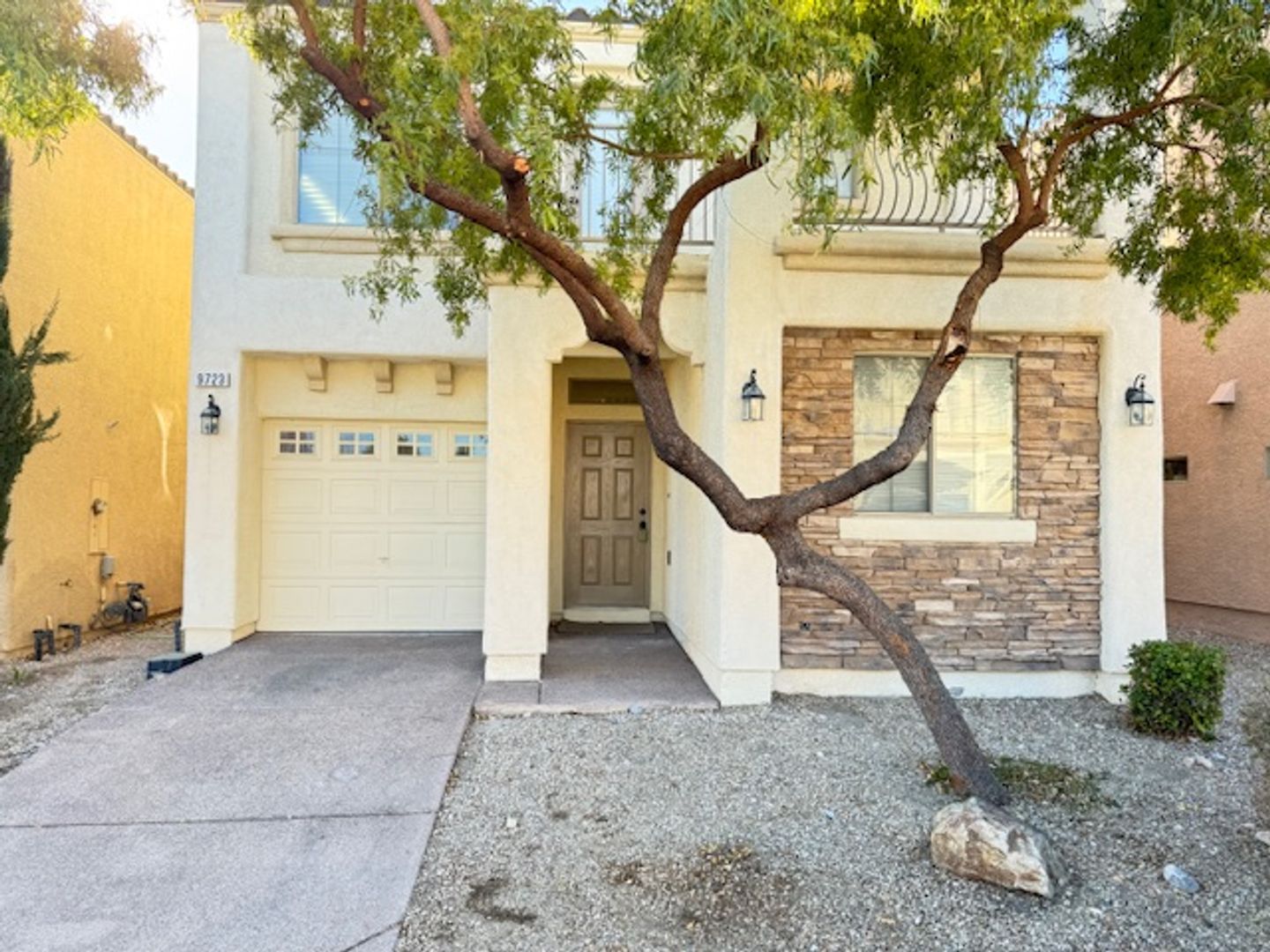 Come check out this cozy two-story home with three bedrooms, two and a half bathrooms, and a one-car garage, located near Summerlin. As you walk in, you'll notice the open layout, leading to a kitchen with granite countertops, tile floors, and a big pantry for all your kitchen essentials. Upstairs, the main bedroom has its own private balcony, a large walk-in closet, and plenty of space to relax. Two other good-sized bedrooms share a bathroom, and the laundry is conveniently located upstairs. You'll also find extra storage under the stairs and a nice backyard for outdoor fun. Plus, there's a park just across the street for even more convenience!