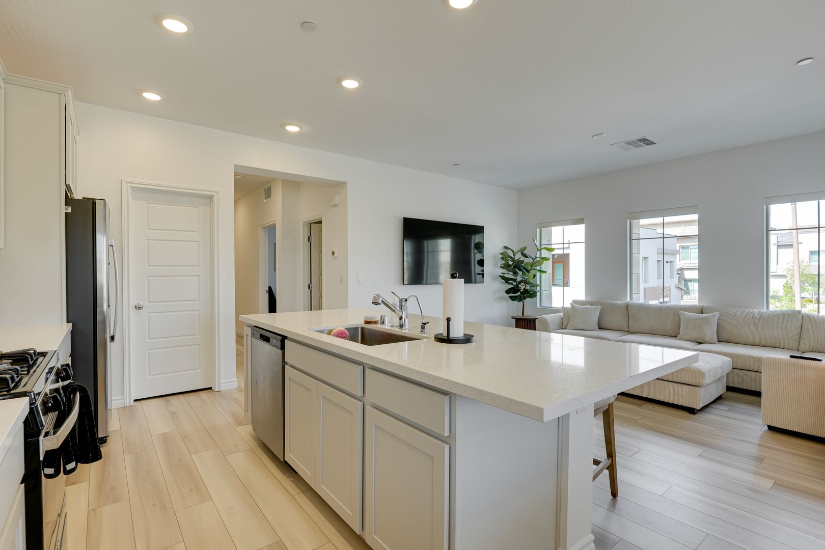 Step inside to find a spacious, open-concept layout featuring a stylish kitchen with a large island, stainless steel appliances, and plenty of room for cooking and entertaining. The primary suite offers a generous walk-in closet, while the private balcony provides stunning mountain views – the ideal place to unwind or host friends.