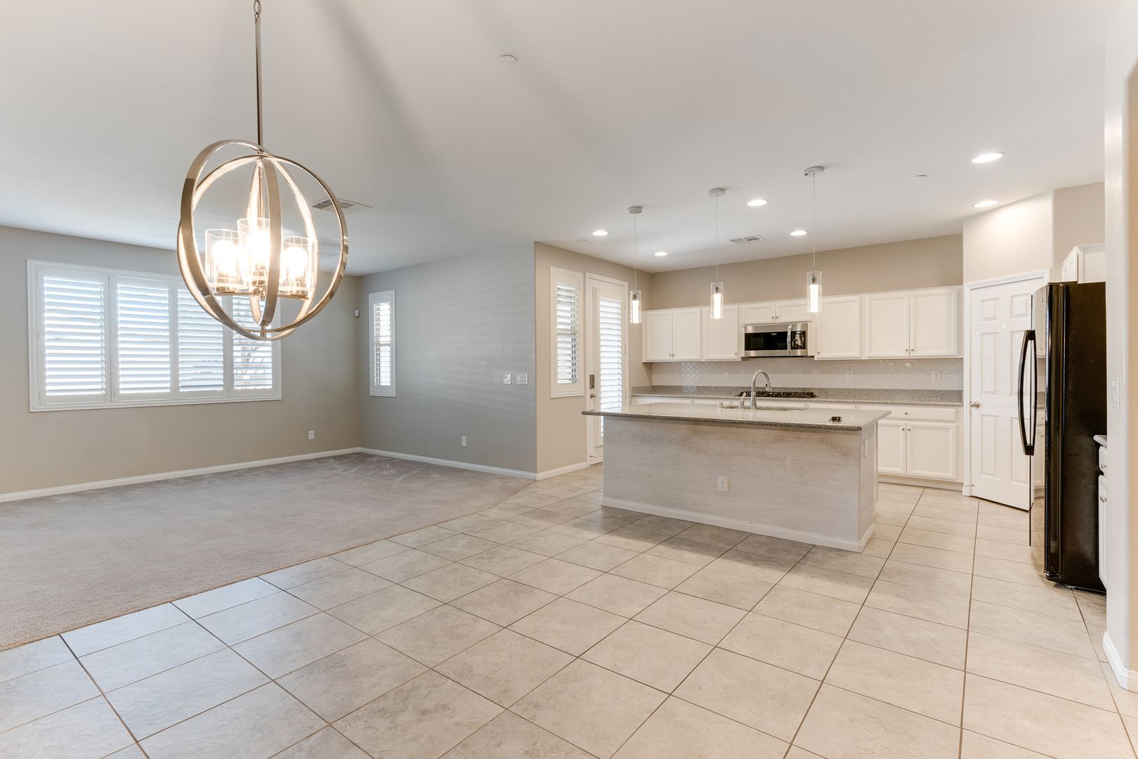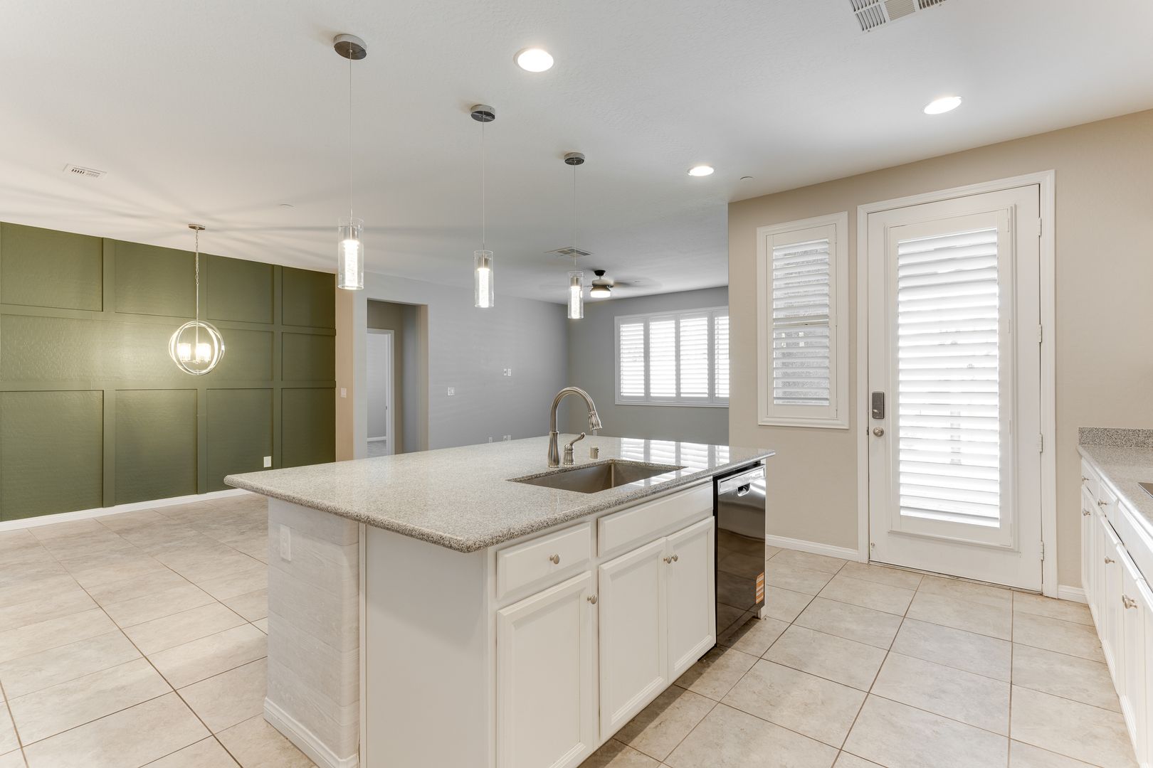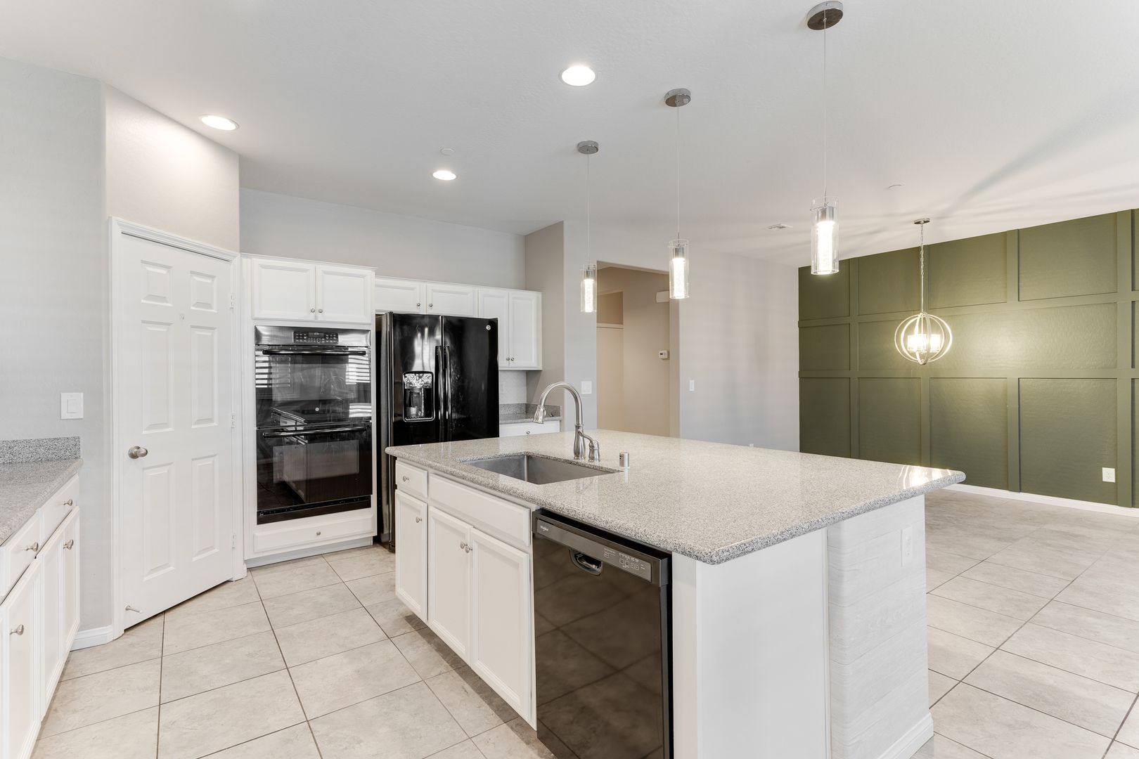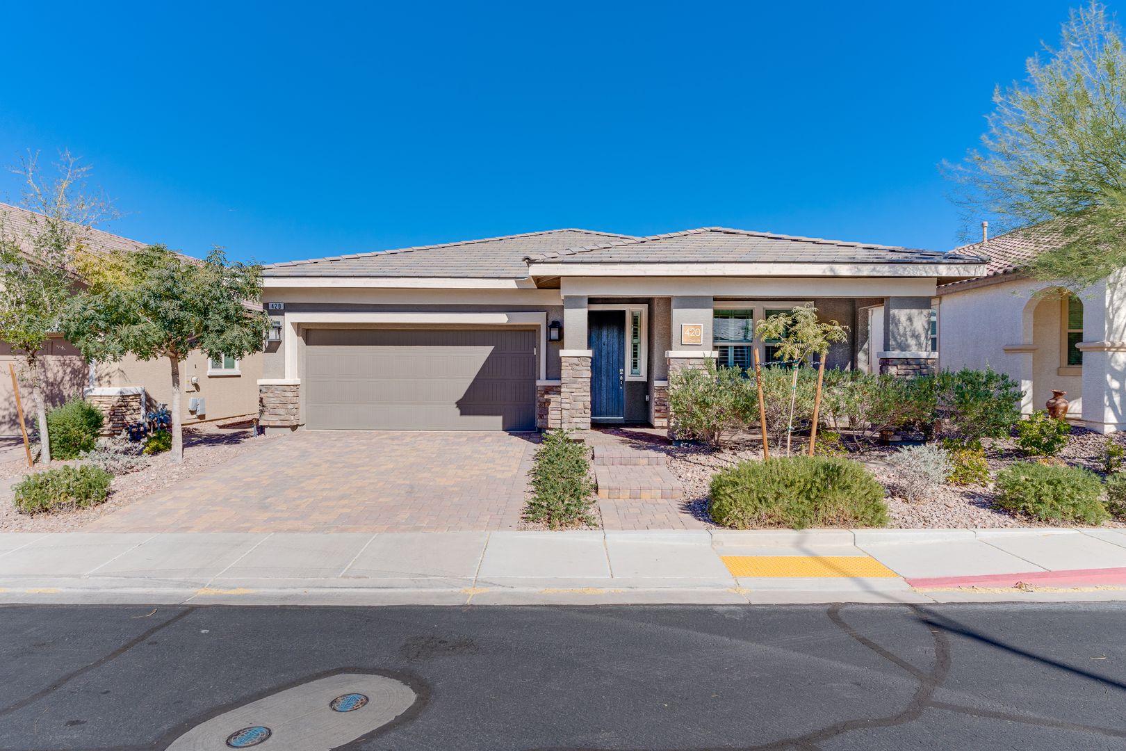 This stunning single-story in Cadence Village offers the perfect blend of comfort, style, and convenience. Step into an open and inviting living and dining area, ideal for relaxing or entertaining. The spacious kitchen features a large island, granite countertops, white cabinets, a gas cooktop, and double ovens, perfect for any home chef. The primary bedroom provides a peaceful retreat with a walk-in closet, ceiling fan, and ensuite bath featuring dual sinks and a luxurious walk-in shower. Enjoy the beautifully maintained backyard with a covered patio and storage shed. Located in the desirable Cadence community, residents have access to Central Park with a lake, dog parks, pool, pickleball courts, playgrounds, and more.