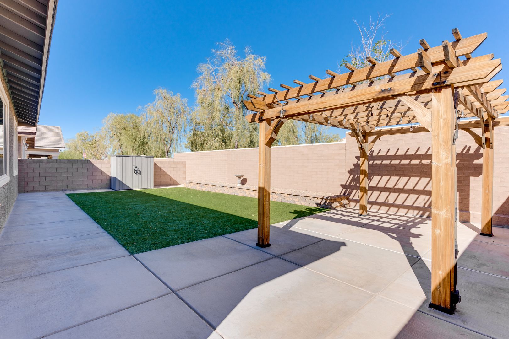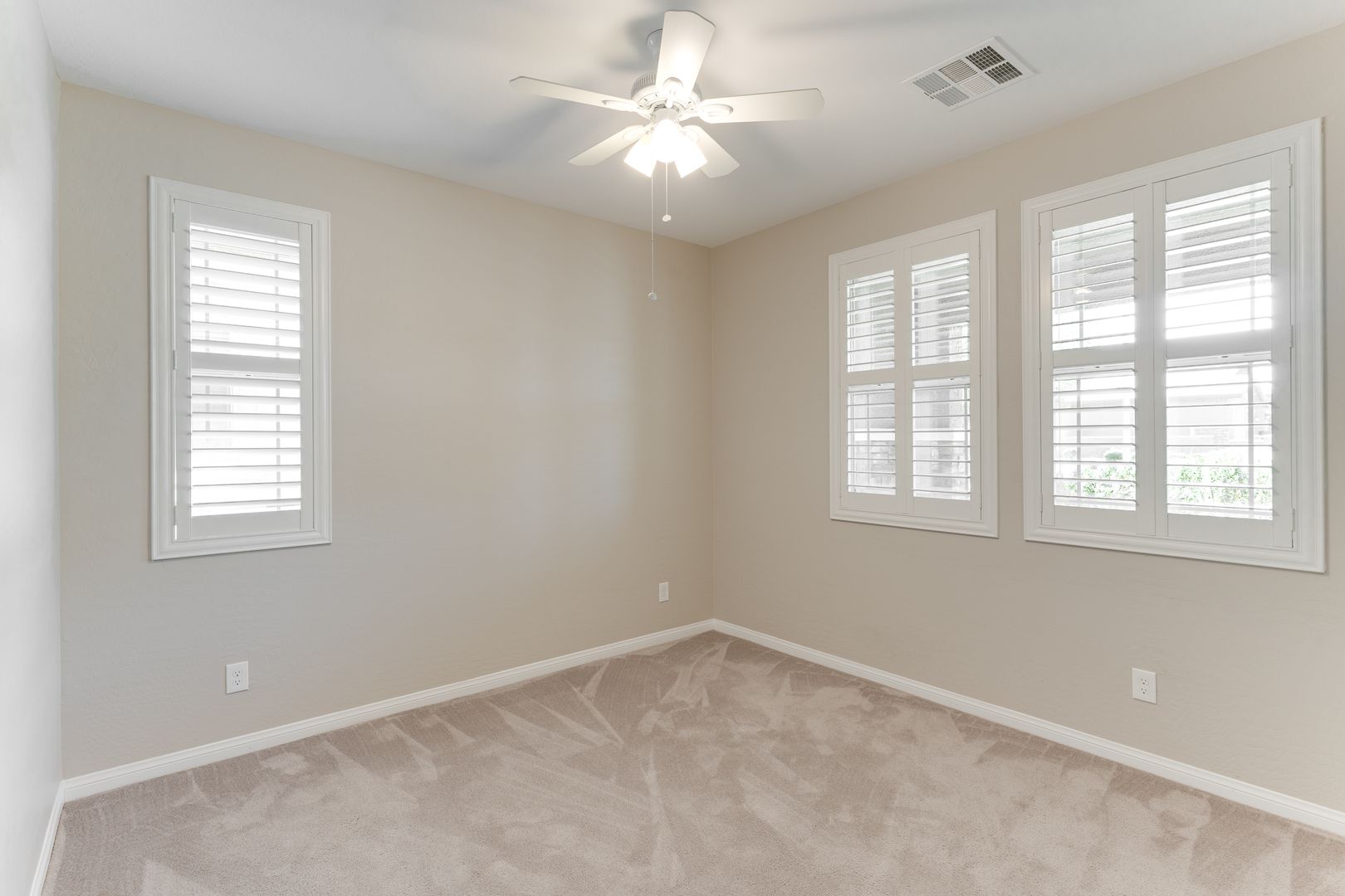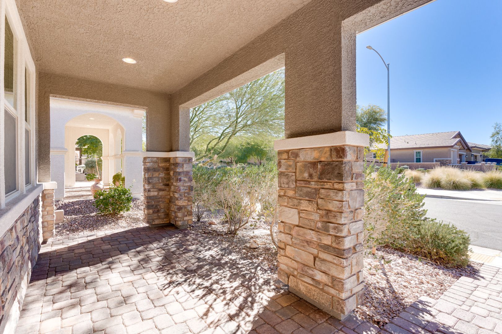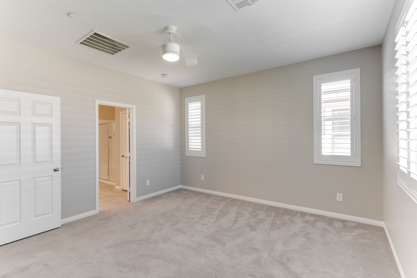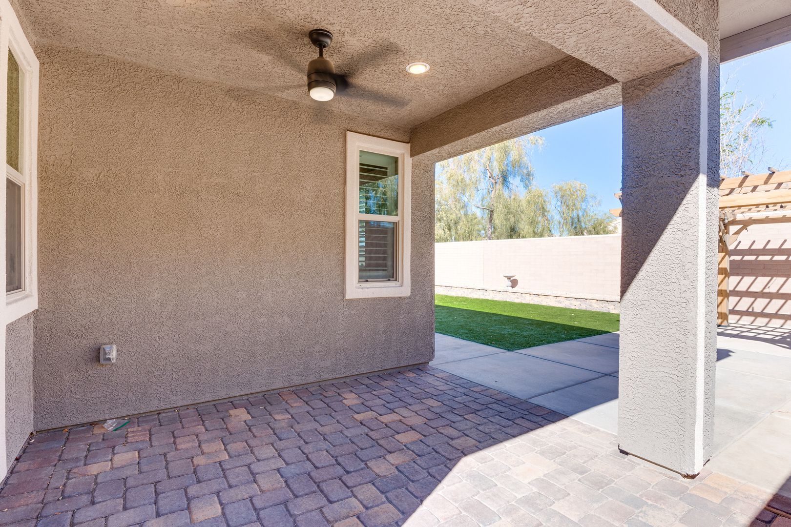 This stunning single-story in Cadence Village offers the perfect blend of comfort, style, and convenience. Step into an open and inviting living and dining area, ideal for relaxing or entertaining. The spacious kitchen features a large island, granite countertops, white cabinets, a gas cooktop, and double ovens, perfect for any home chef. The primary bedroom provides a peaceful retreat with a walk-in closet, ceiling fan, and ensuite bath featuring dual sinks and a luxurious walk-in shower. Enjoy the beautifully maintained backyard with a covered patio and storage shed. Located in the desirable Cadence community, residents have access to Central Park with a lake, dog parks, pool, pickleball courts, playgrounds, and more.