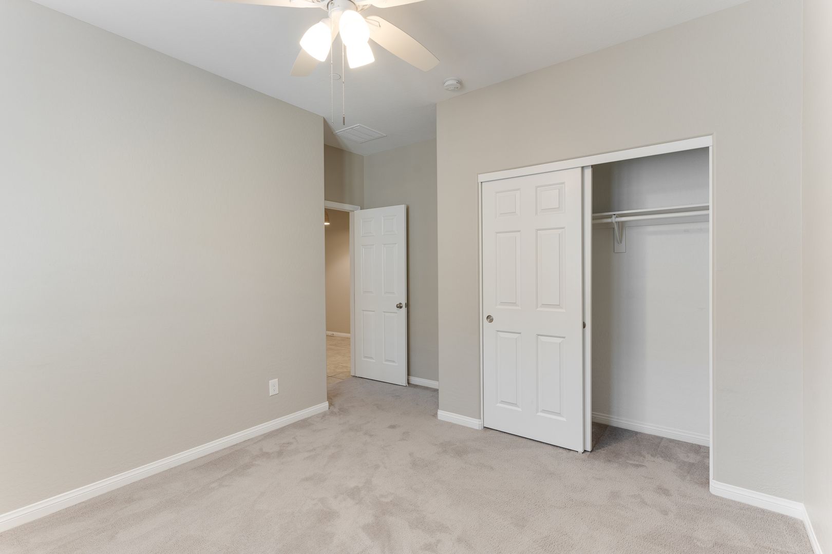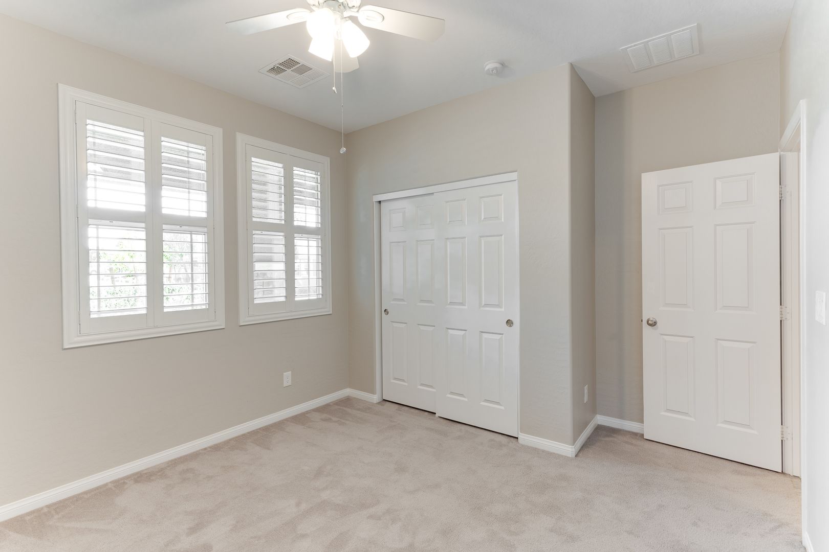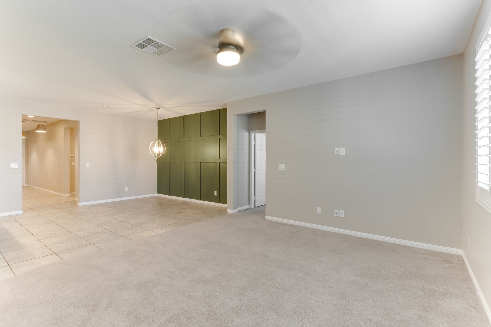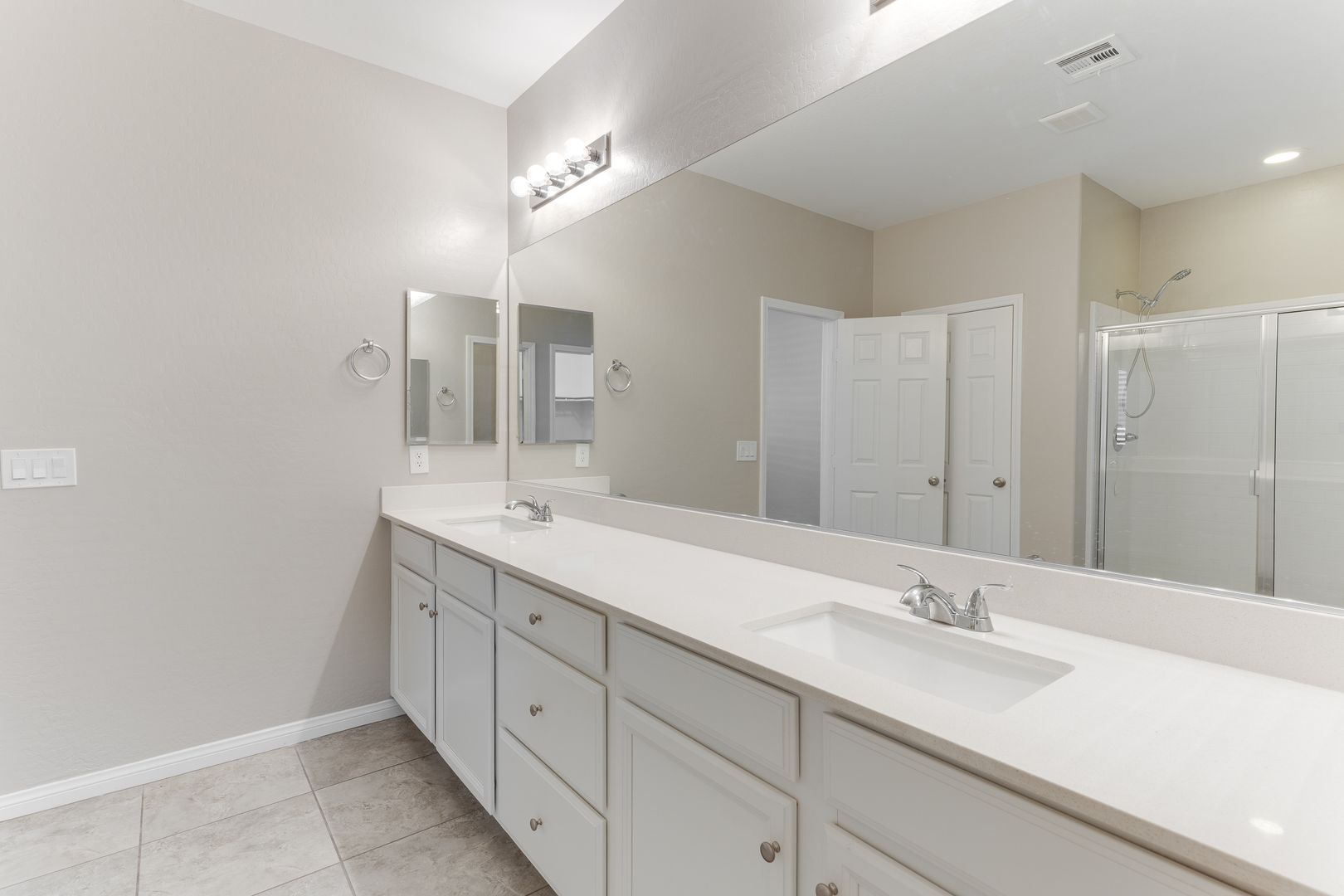 This stunning single-story in Cadence Village offers the perfect blend of comfort, style, and convenience. Step into an open and inviting living and dining area, ideal for relaxing or entertaining. The spacious kitchen features a large island, granite countertops, white cabinets, a gas cooktop, and double ovens, perfect for any home chef. The primary bedroom provides a peaceful retreat with a walk-in closet, ceiling fan, and ensuite bath featuring dual sinks and a luxurious walk-in shower. Enjoy the beautifully maintained backyard with a covered patio and storage shed. Located in the desirable Cadence community, residents have access to Central Park with a lake, dog parks, pool, pickleball courts, playgrounds, and more.