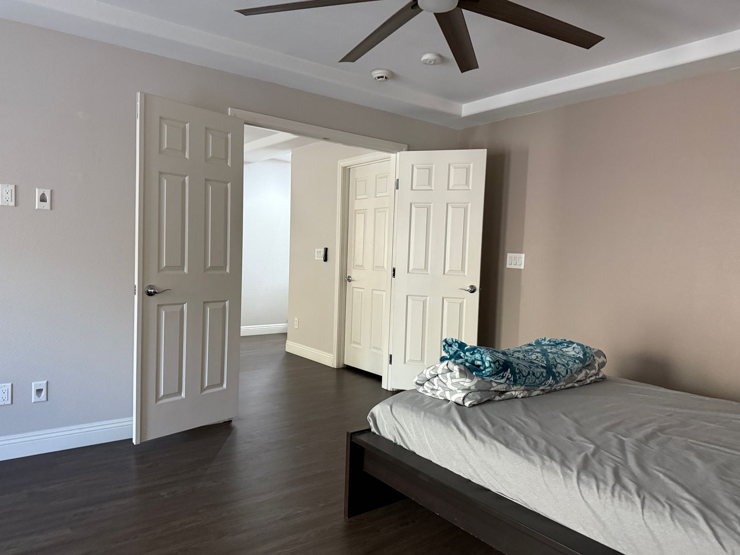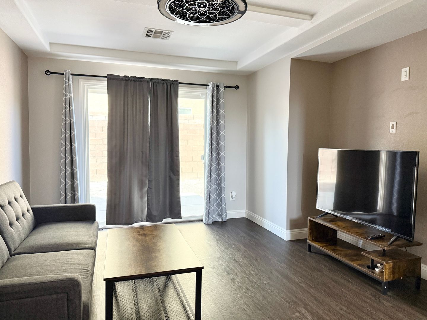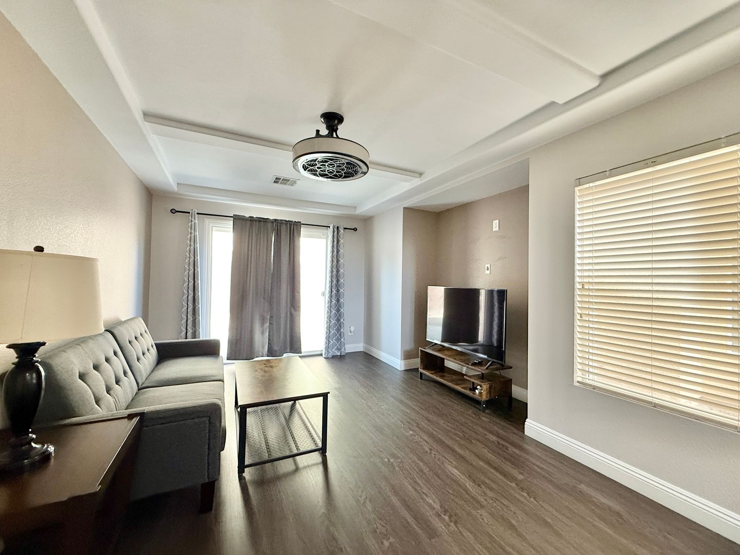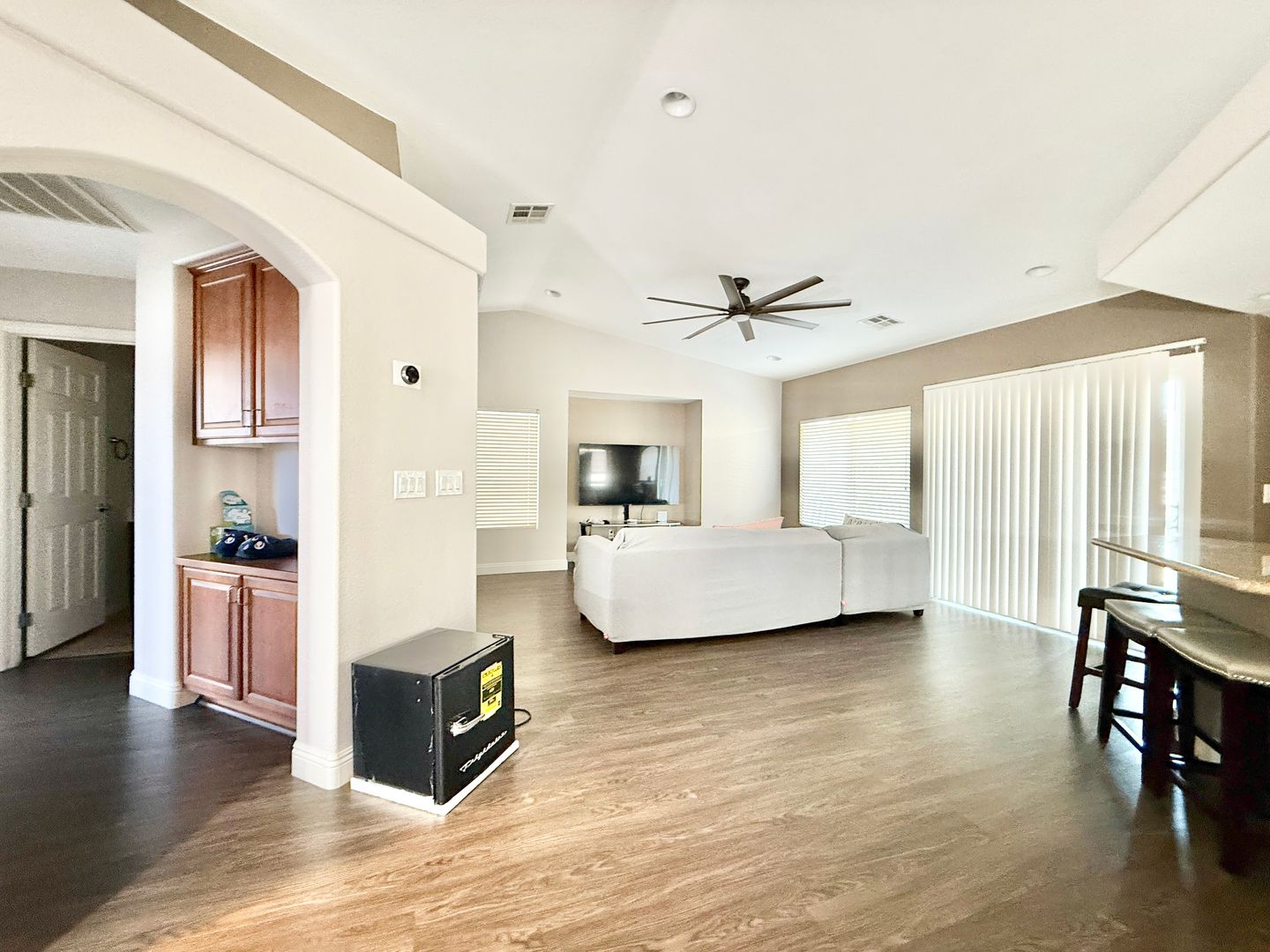 This spacious home offers 3 bedrooms plus a versatile downstairs bonus living room, ideal for a variety of uses. Located in a quiet cul-de-sac, the property features an open kitchen with granite countertops and a charming garden window, perfect for entertaining. The ground-level primary suite includes custom closets and ample space for comfort. Designer light fixtures and ceiling fans are installed throughout the home, adding a touch of elegance. The large backyard offers endless potential for outdoor enjoyment.